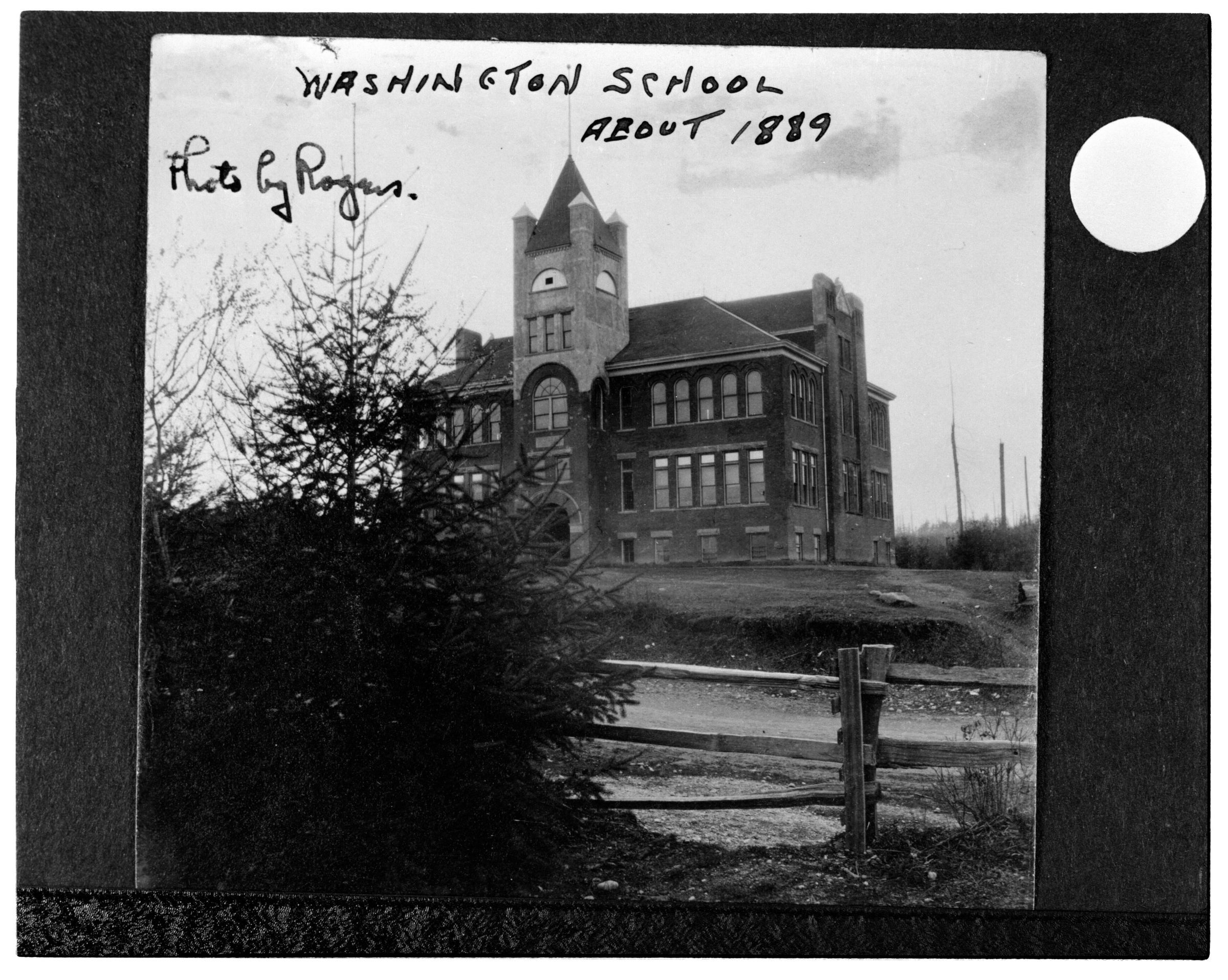 Negative, sheet film. 4 x 5 b&w. Washington School in Olympia. Photo by A. D. Rogers.