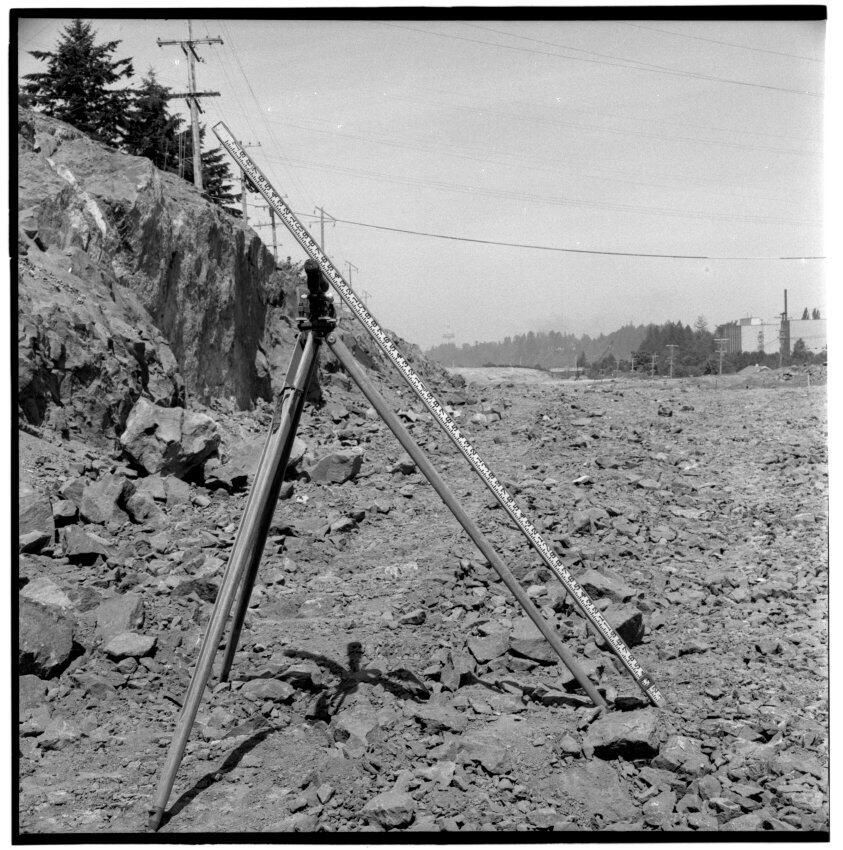 Negative, sheet film. 2.25 x 2.25 b&w. No. 322. Custer Way Bridge being built.