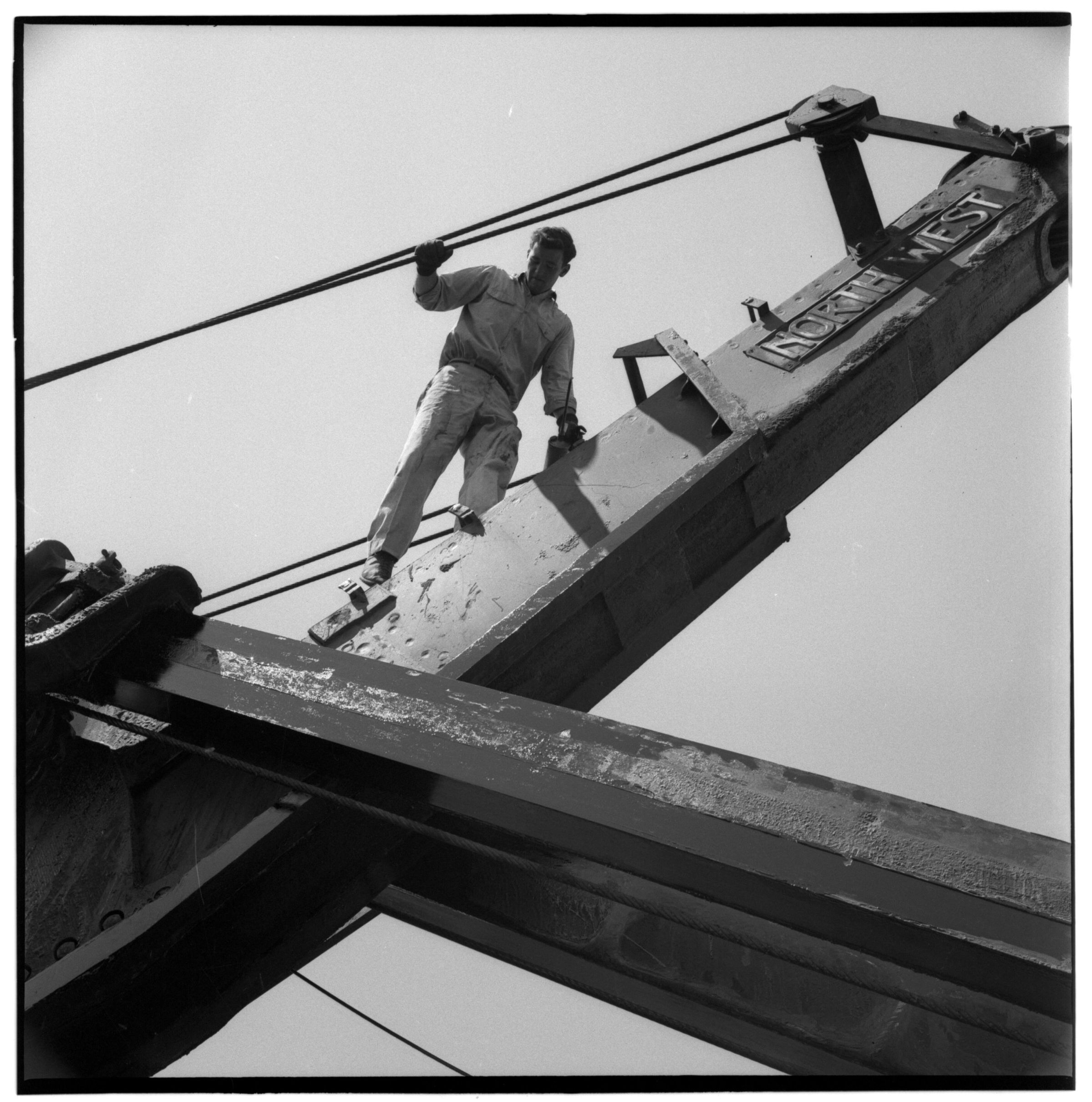 Negative, sheet film. 2.25 x 2.25 b&w. No. 322. Custer Way Bridge being built.