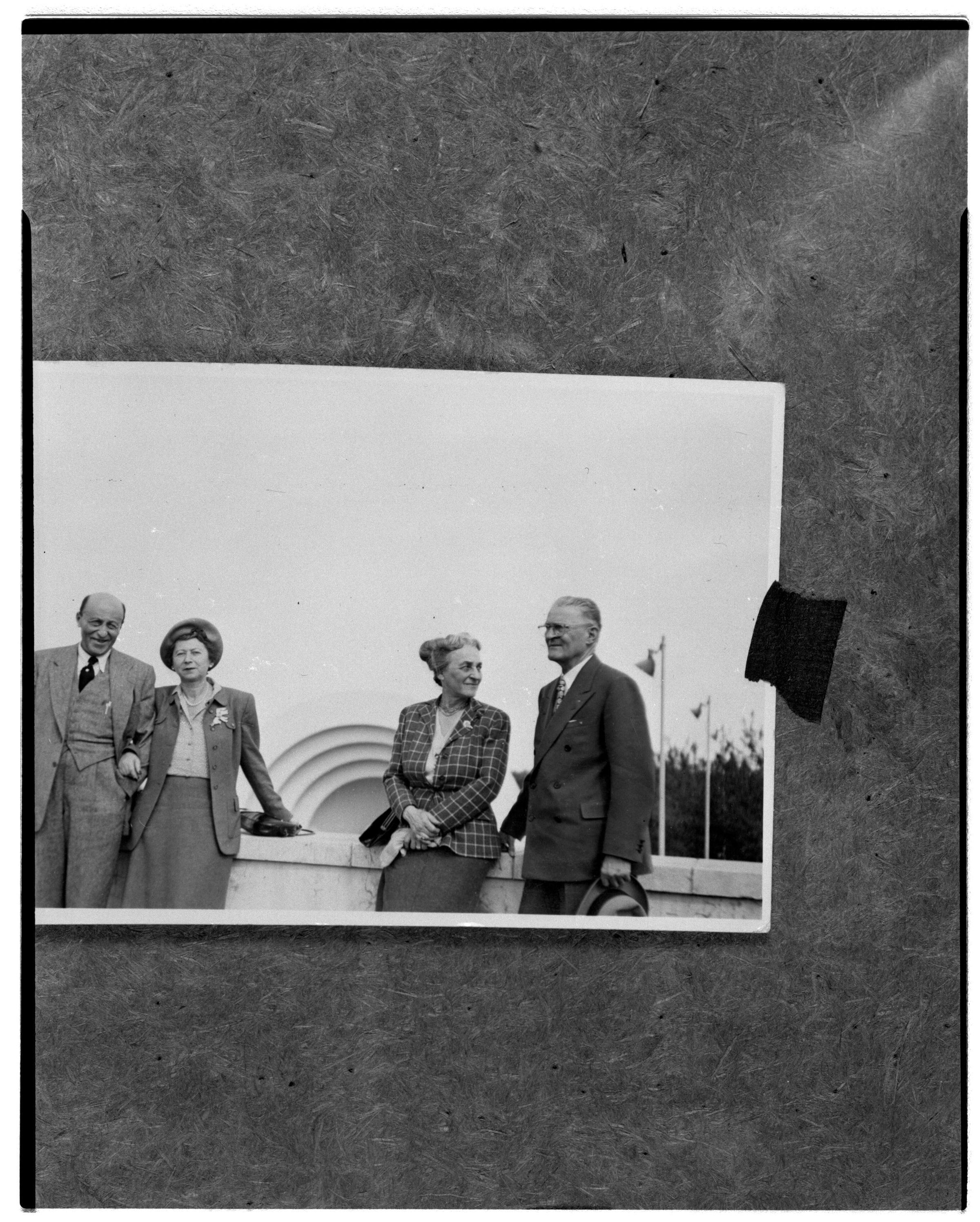 Negative, sheet film. 4 x 5 b&w. No. 577. Peter and Clara Schmidt at right; no ID on other couple. Unknown location.