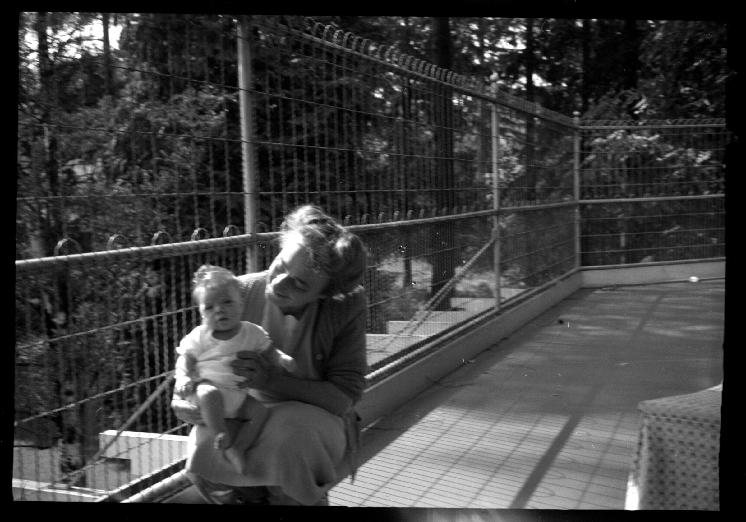 Negative, sheet film. 1 x 1.5 b&w. Clara Schmidt with granddaughter Mimi.
