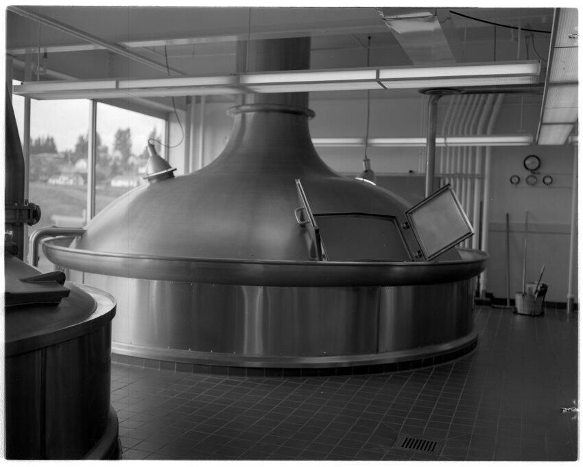 Negative, sheet film. 4 x 5 b&w. OBCo. Brew Kettle in B brewhouse, looking west. Taken for B. Holmes.