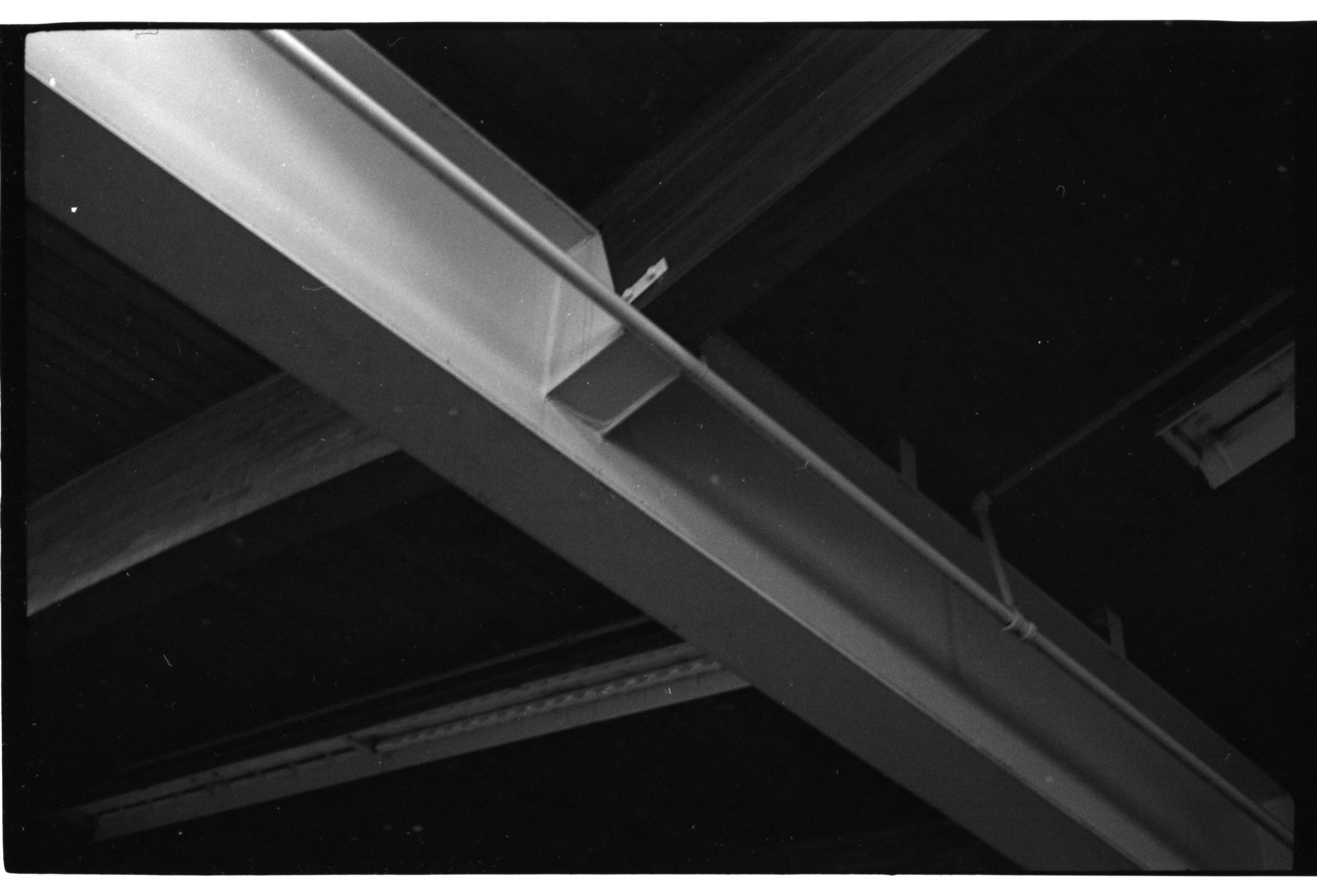 Negative, sheet film. 1 x 1.5 b&w. Unidentified scene at Oly brewery.
