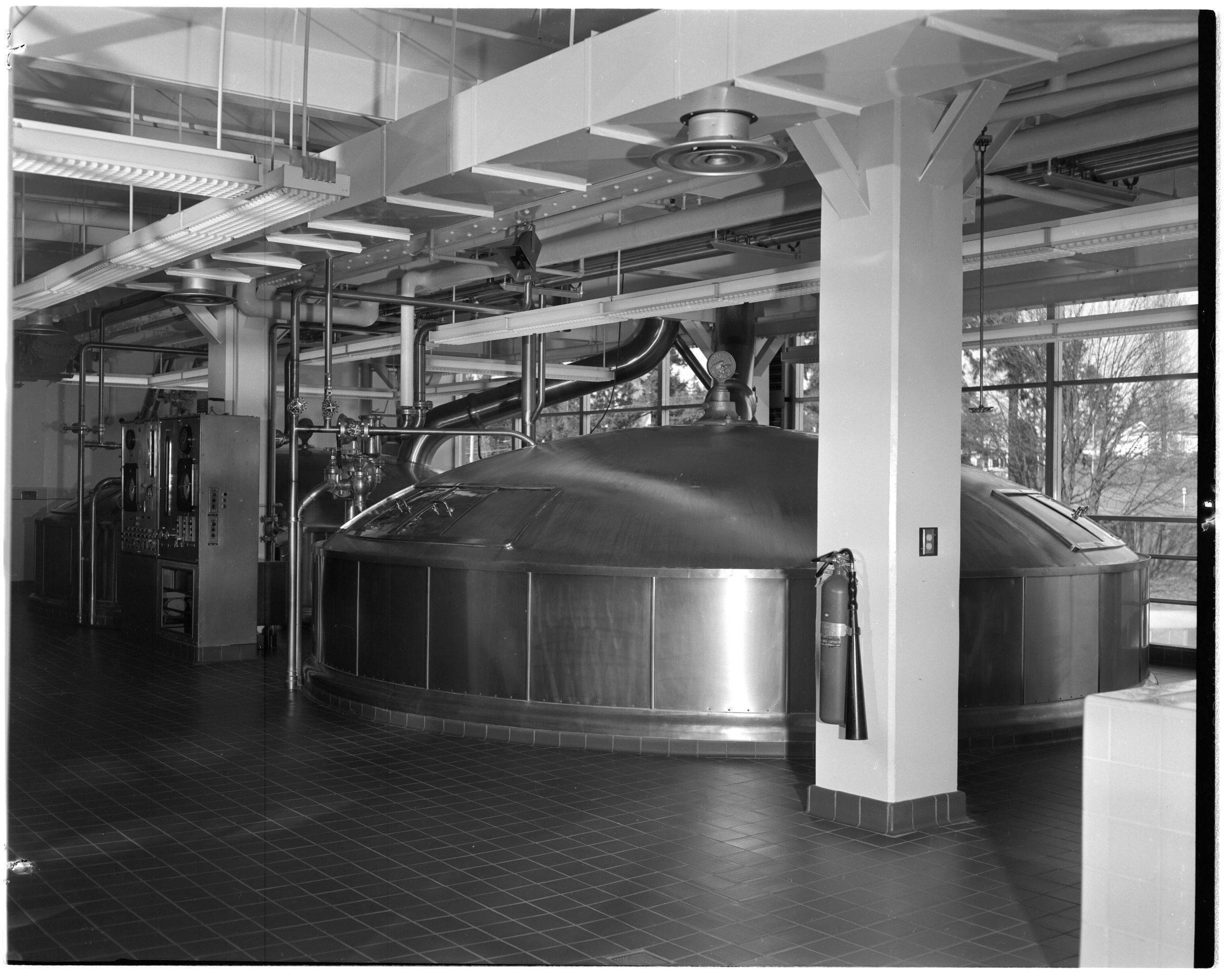 Negative, sheet film. 4 x 5 b&w. B brewhouse at Oly brewery. #5 lauter tub.