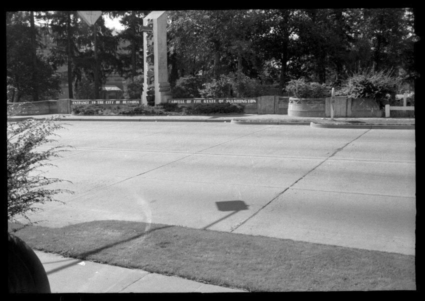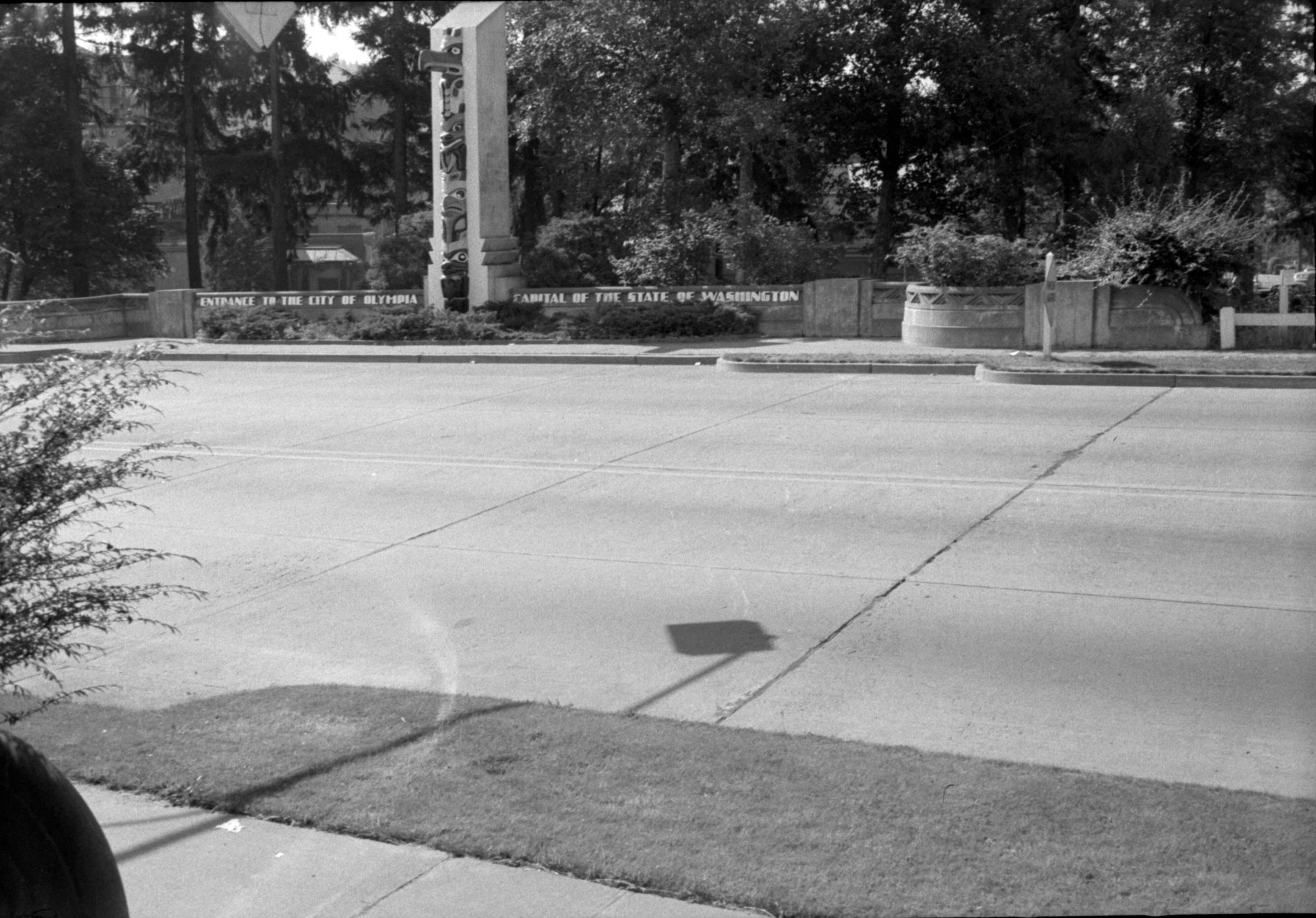 Negative, sheet film. 1 x 2 b&w. No. 744. Peter Schmidt. Carlyon Bridge with painted totem poles.