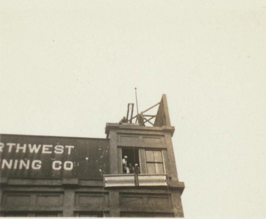 Photograph. Salem, OR. Northwest Canning Company in Salem, OR, showing equipment being hauled up to top floor.