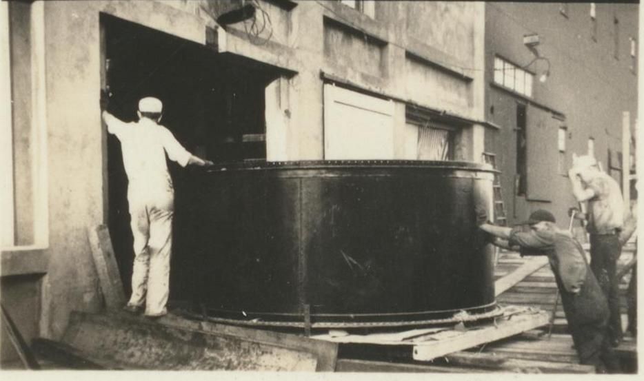 Photograph. Salem, OR. Northwest Canning Company in Salem, OR, showing tank being installed.