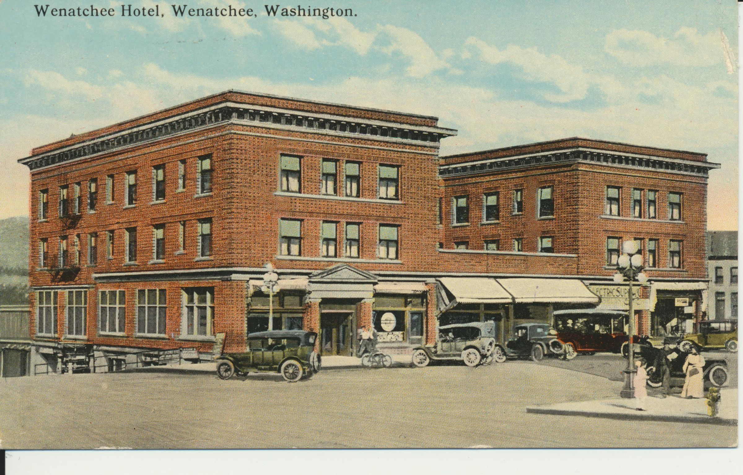 Postcard. View of Wenatchee Hotel in Wenatchee WA.