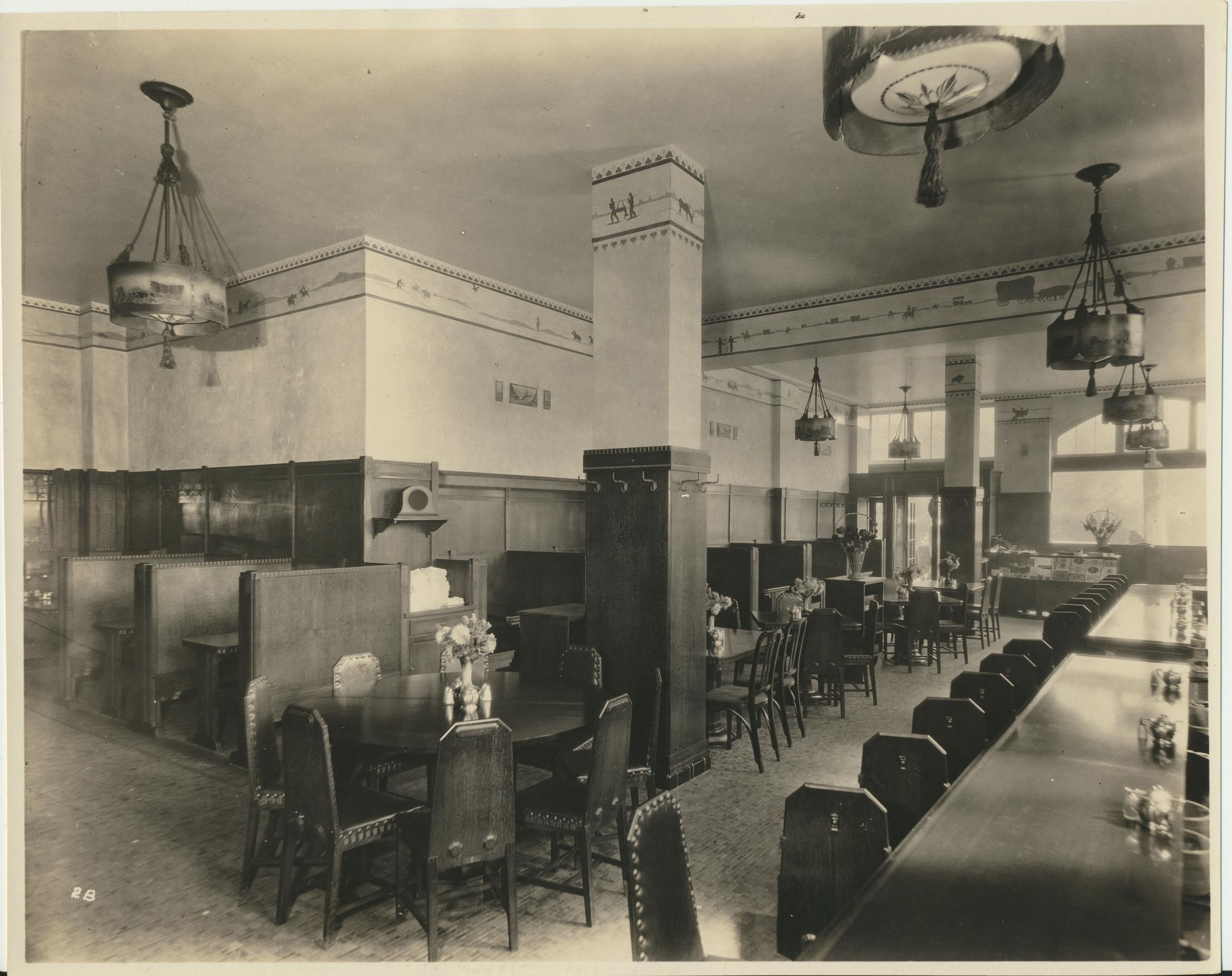 Photograph. Dining room in unknown restaurant or hotel, unknown city.