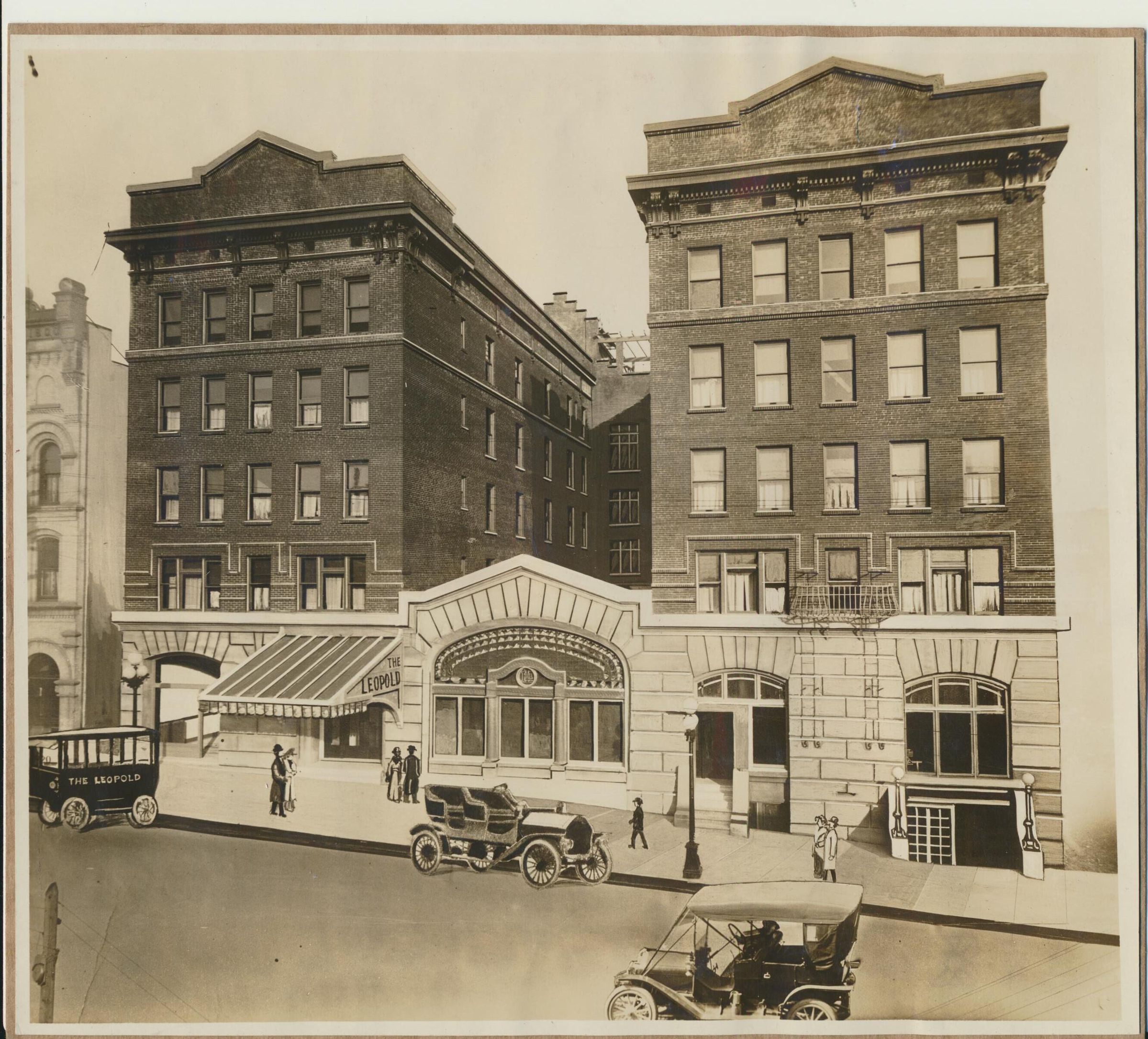 Photograph. Architect's view of Hotel Leopold, Bellingham WA. Original hotel was built in 1899, by Josiah Byron, and was known as the Byron House Hotel. In 1910, Leopold Schmidt bought the hotel.