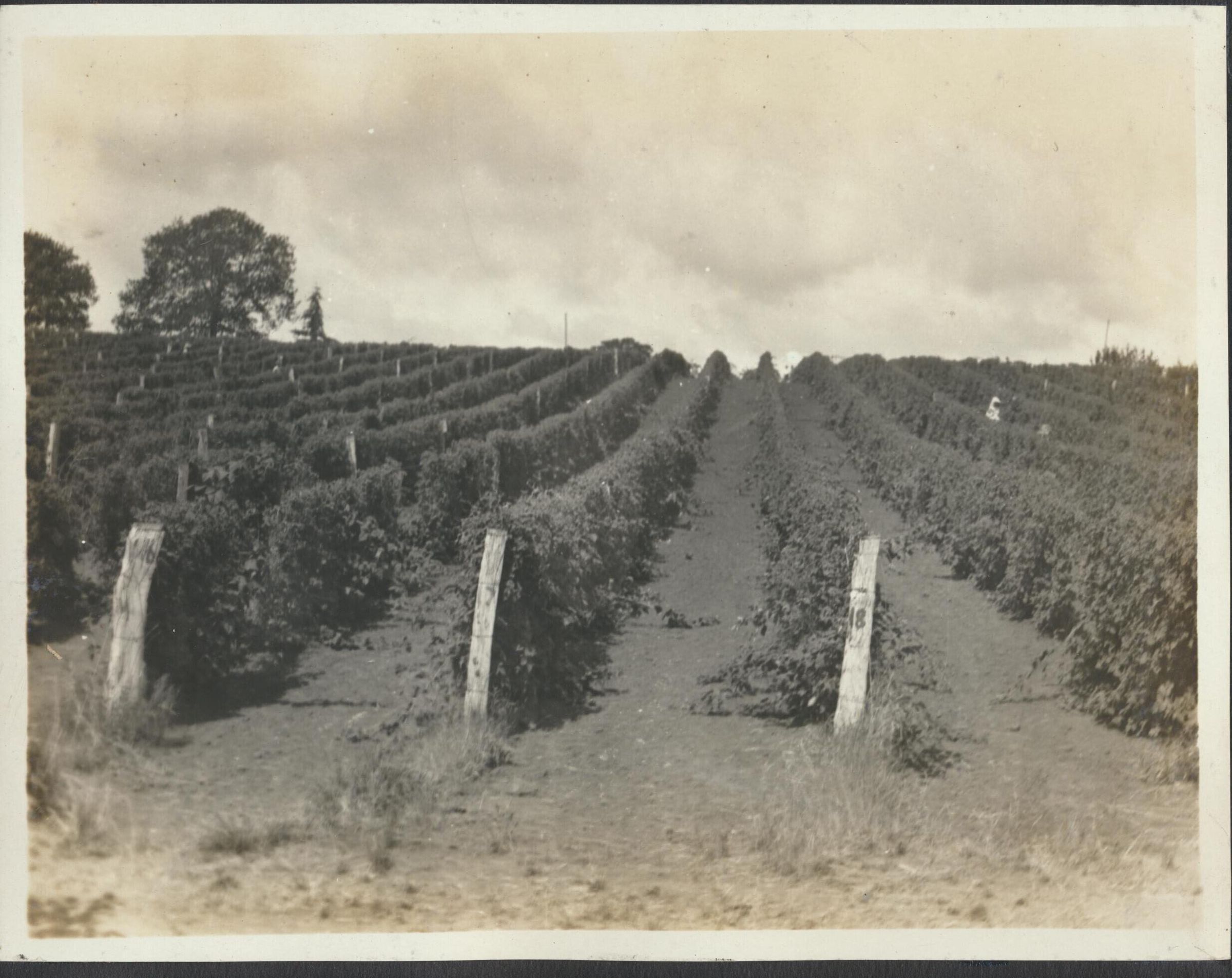 Photograph. Loganberries grown for Northwest Fruit Products Company plant in Salem OR. Formerly Salem Brewing Association brewery. Just before Prohibition (end of 1915), brewery was converted to making juice from loganberries. Principal product was Loju.Name/Title