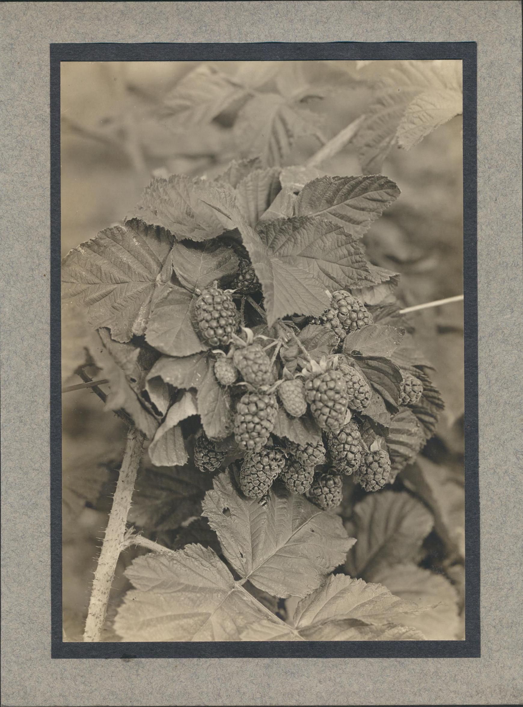 Photograph. Loganberries grown for Northwest Fruit Products Company plant in Salem OR. Formerly Salem Brewing Association brewery. Just before Prohibition (end of 1915), brewery was converted to making juice from loganberries. Principal product was Loju.Name/Title