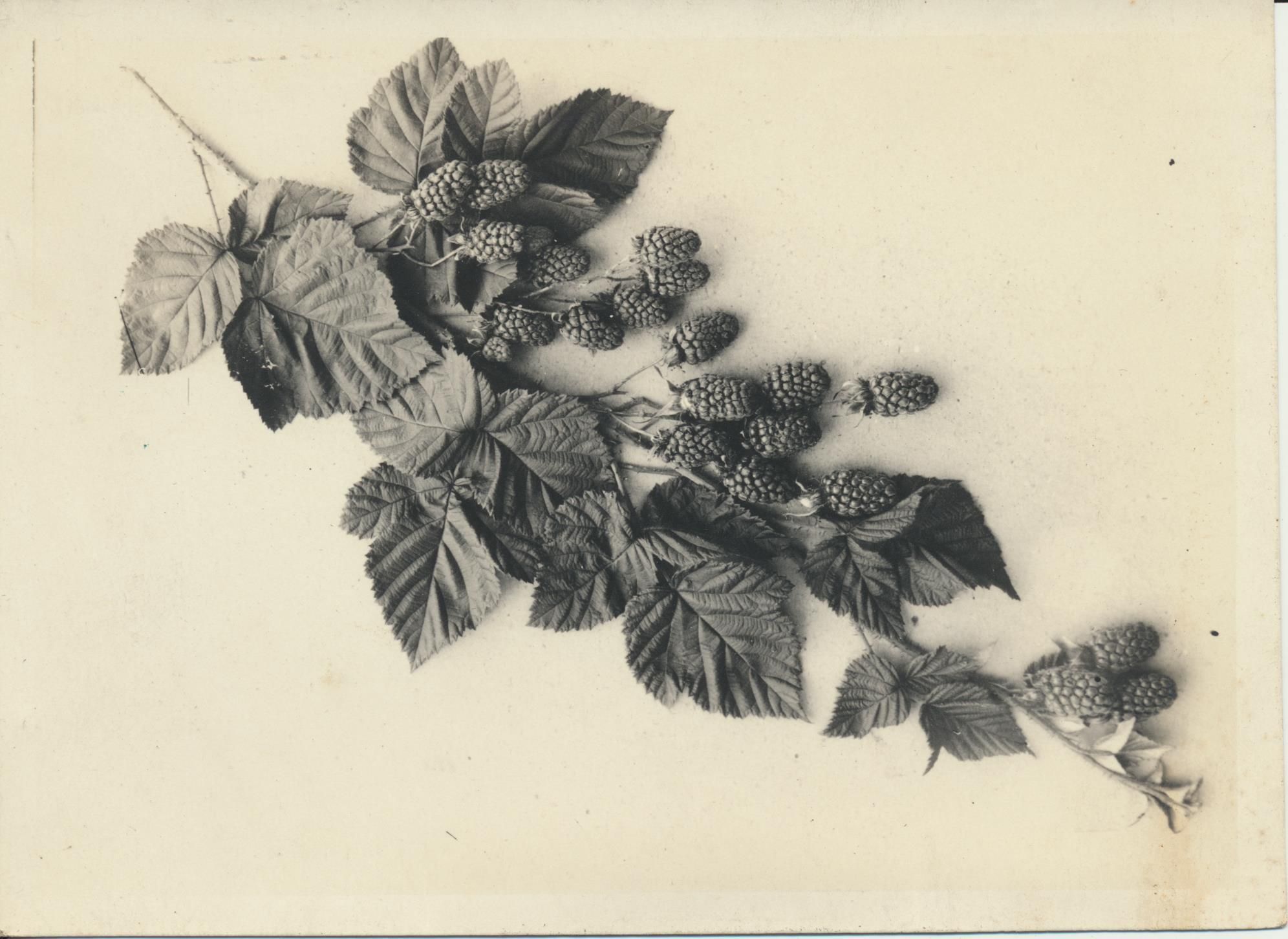 Photograph. Loganberries, grown for Northwest Fruit Products Company plant in Salem OR. Formerly Salem Brewing Association brewery. Just before Prohibition (end of 1915), brewery was converted to making juice from loganberries. Principal product was Loju.Name/Title