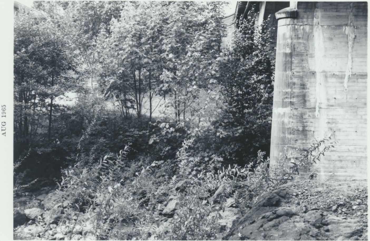 Photograph. View looking west in Tumwater Falls Park, showing Boston Street Bridge abutment.