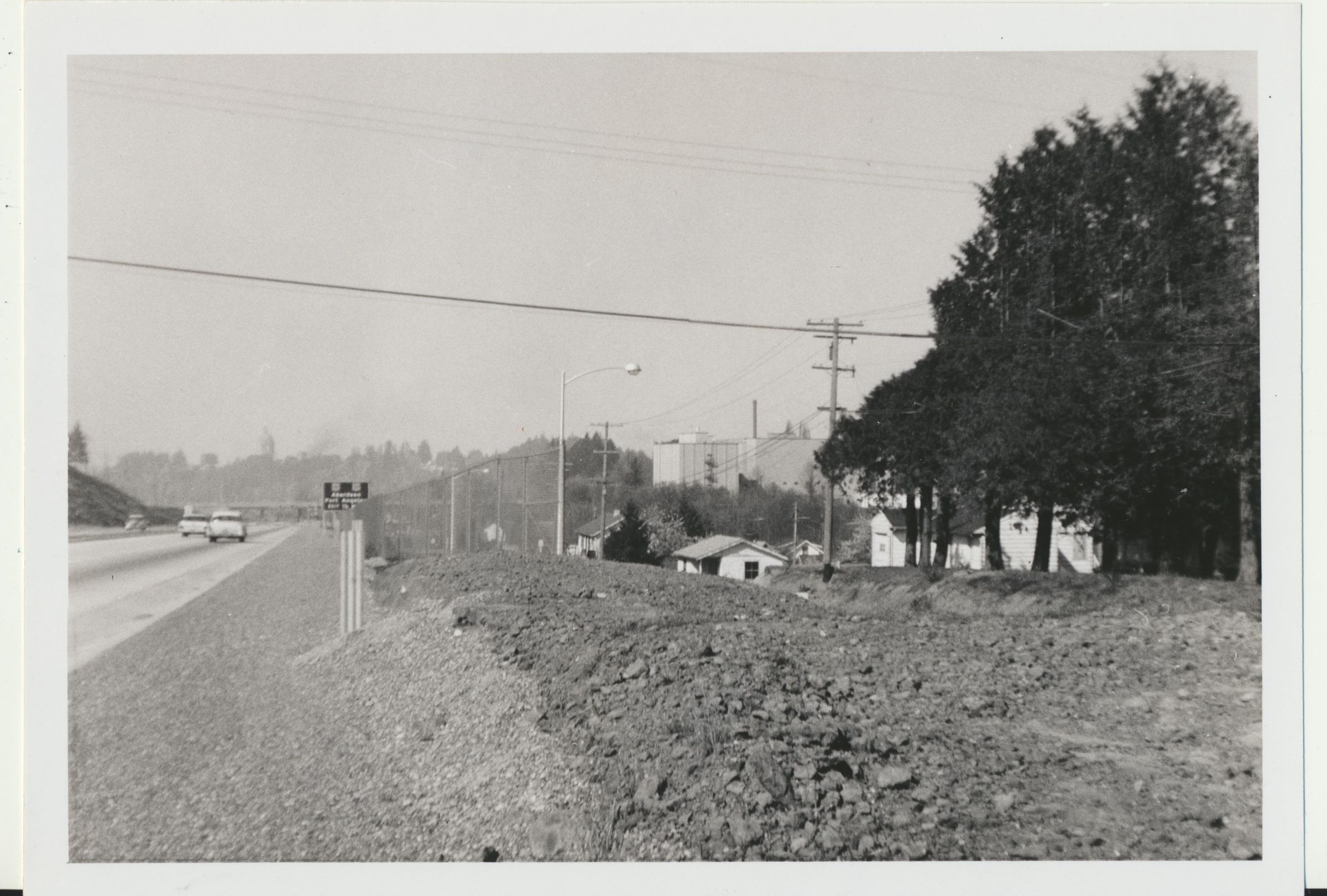 Photograph. View of I-5 looking north; Olympia brewery on right in distance.
