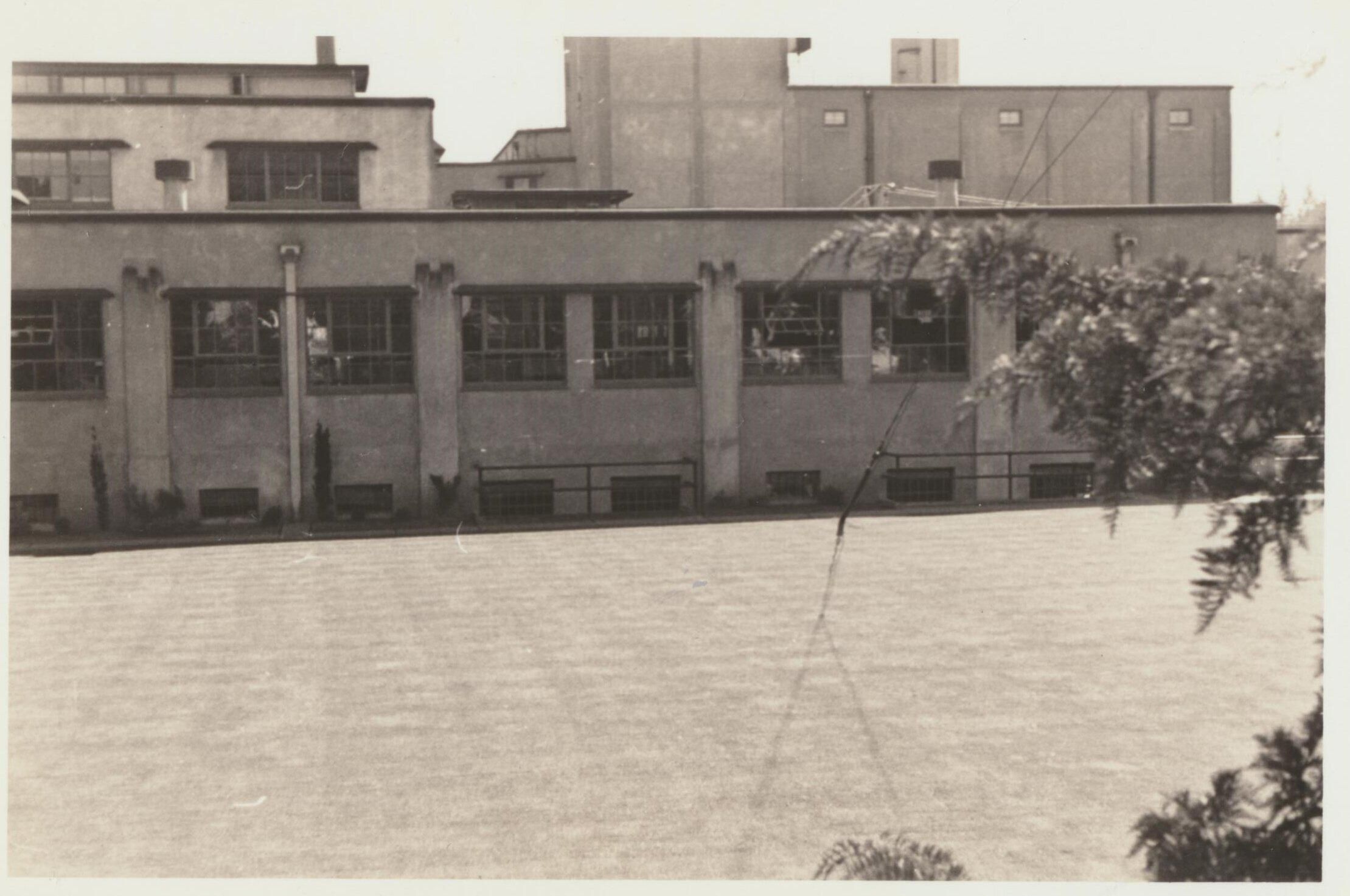 Photograph. Olympia brewery. A-bottle house, with J and K cellars on right in the background. Looking south.