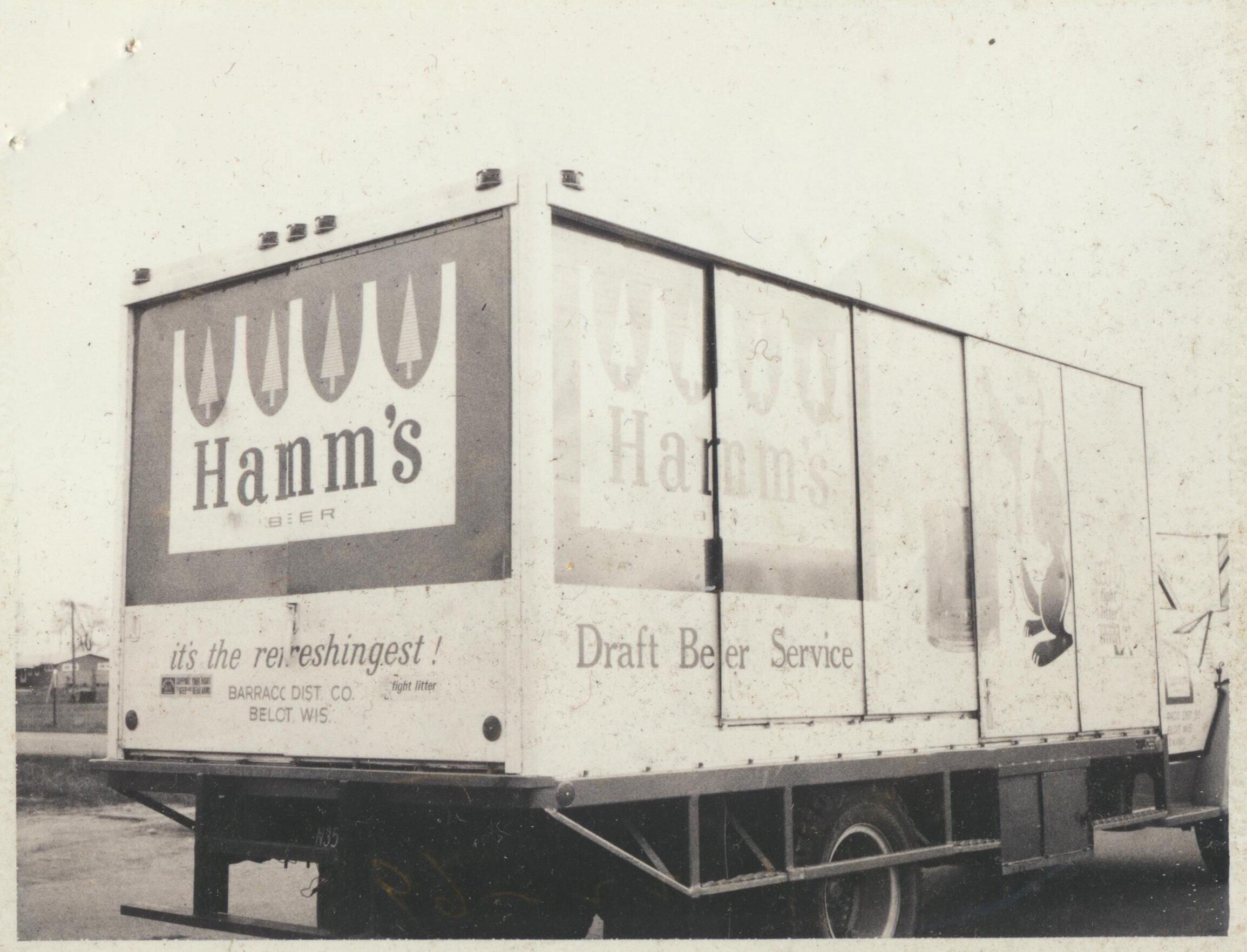 Photograph. Hamm's beer truck from Barraco Distributing Co. of Beloit WI.