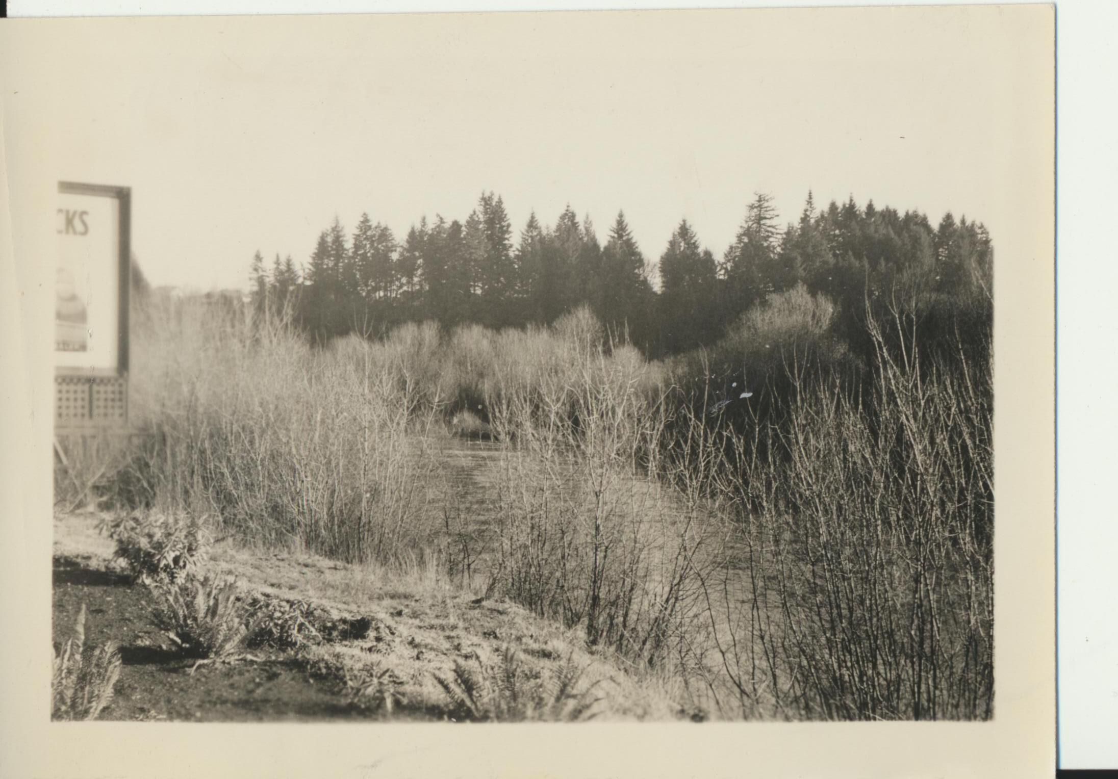 Photograph. Looking northeast from brewery; high water in marsh that would later be drained and filled for bottle shop/warehouse complex at brewery.