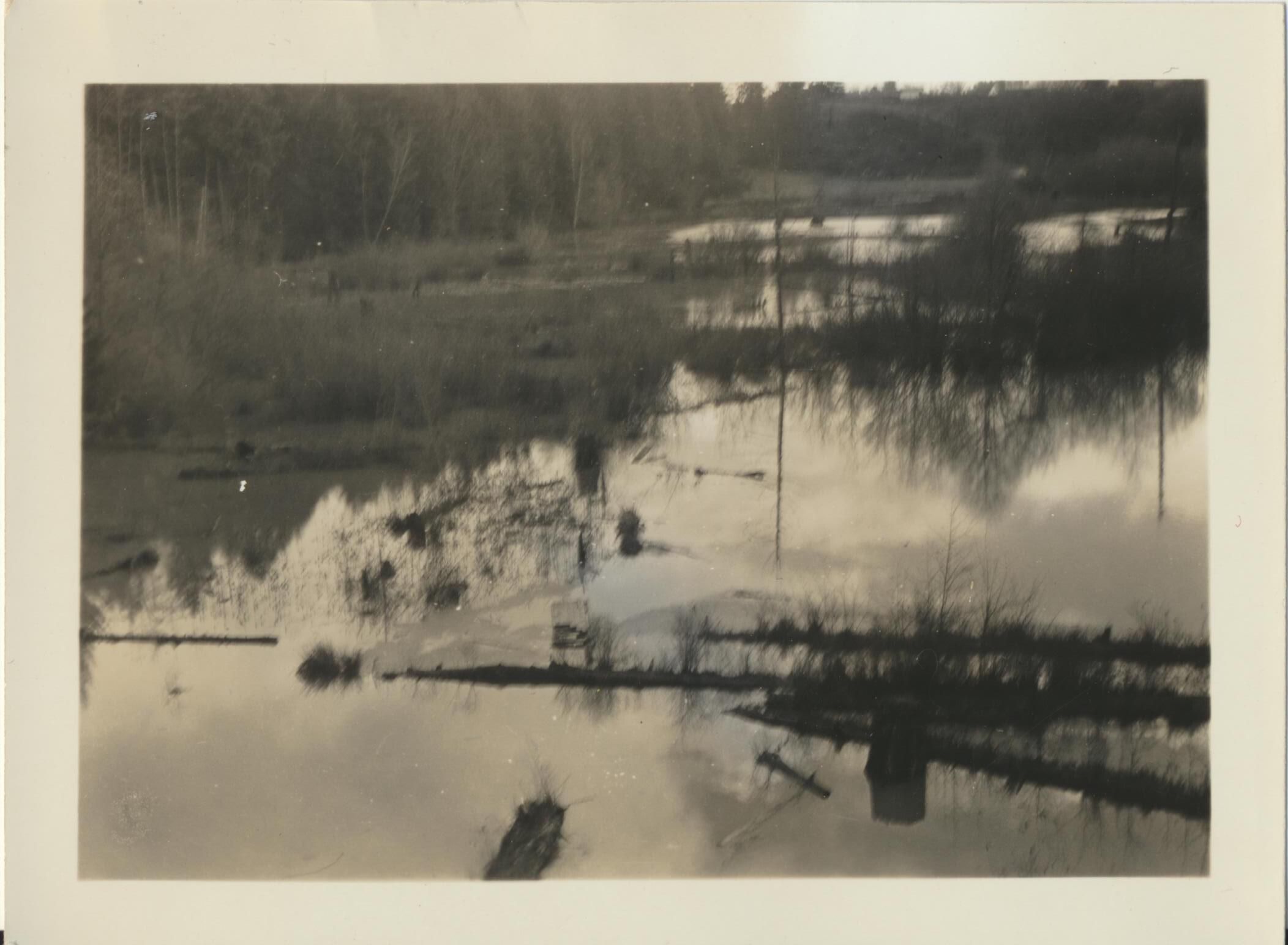 Photograph. From Carlyon Bridge, looking east over marsh that was later drained for construction of bottlehouse/warehouse complex.