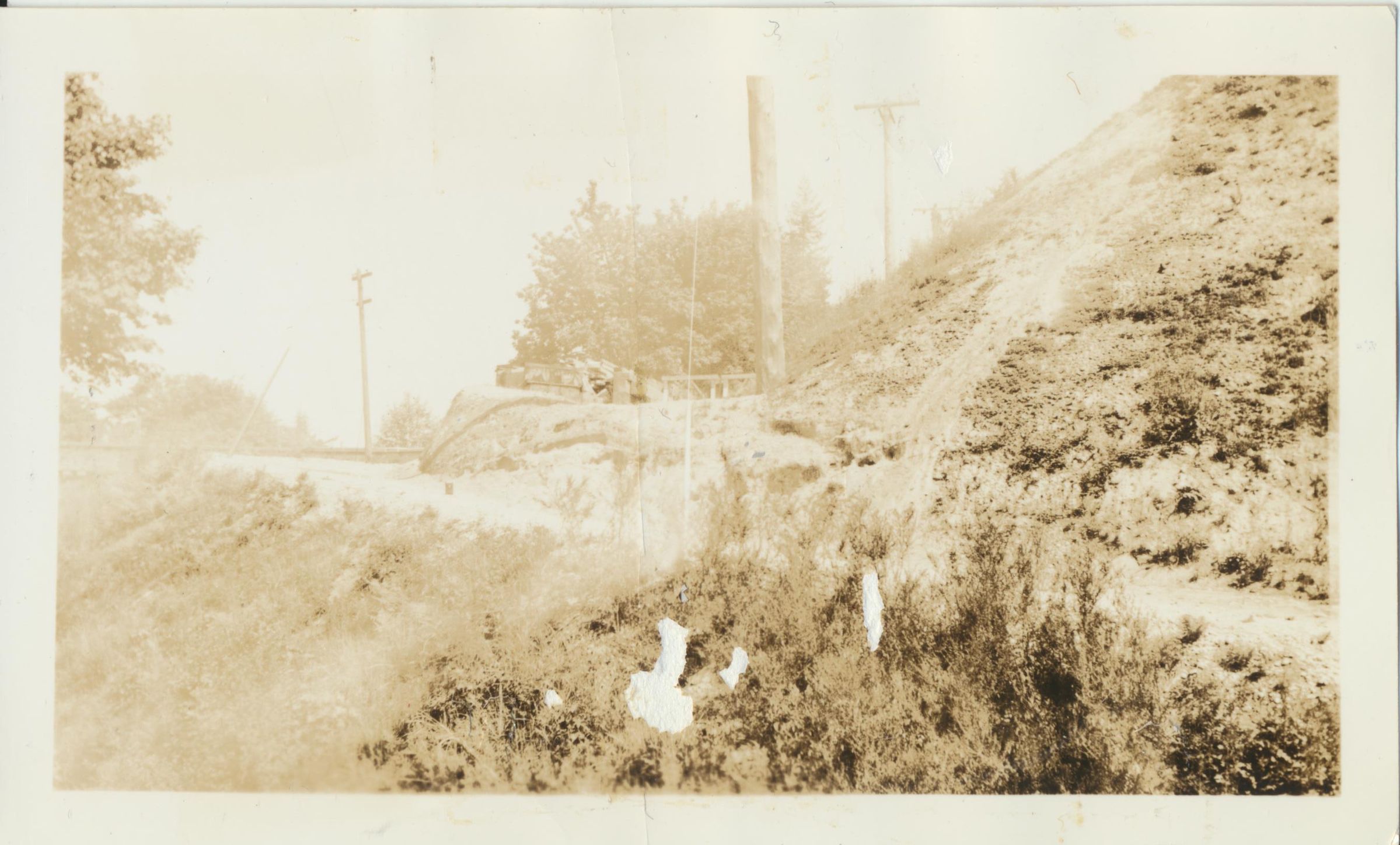 Photograph. Olympia Brewery. Construction of M cellar, showing cut near east end of Boston Street Bridge. Looking north.