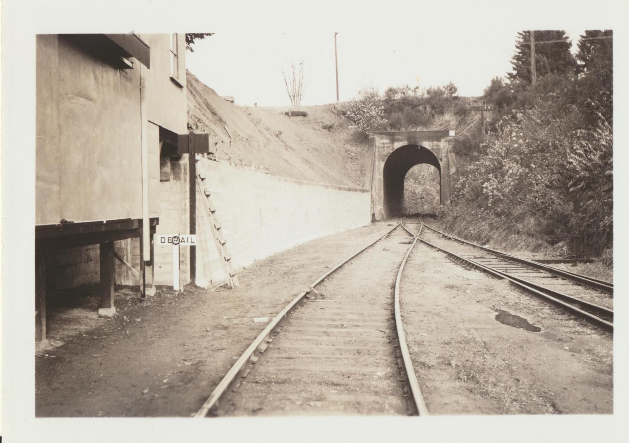 Photograph. Olympia Brewery. Railroad tunnel on Custer Way. Looking north.