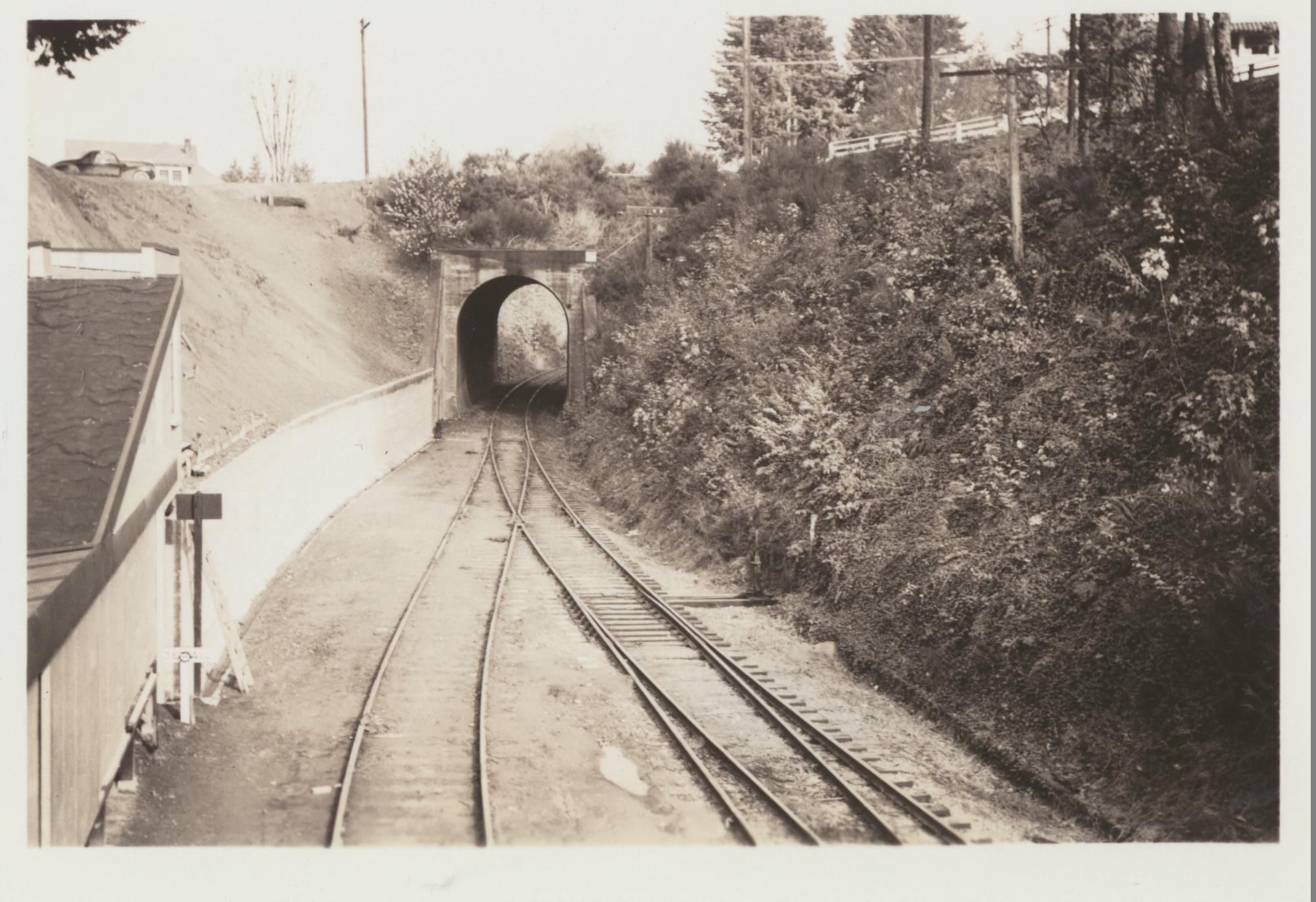 Photograph. Olympia Brewery. Railroad tunnel on Custer Way. Looking north.