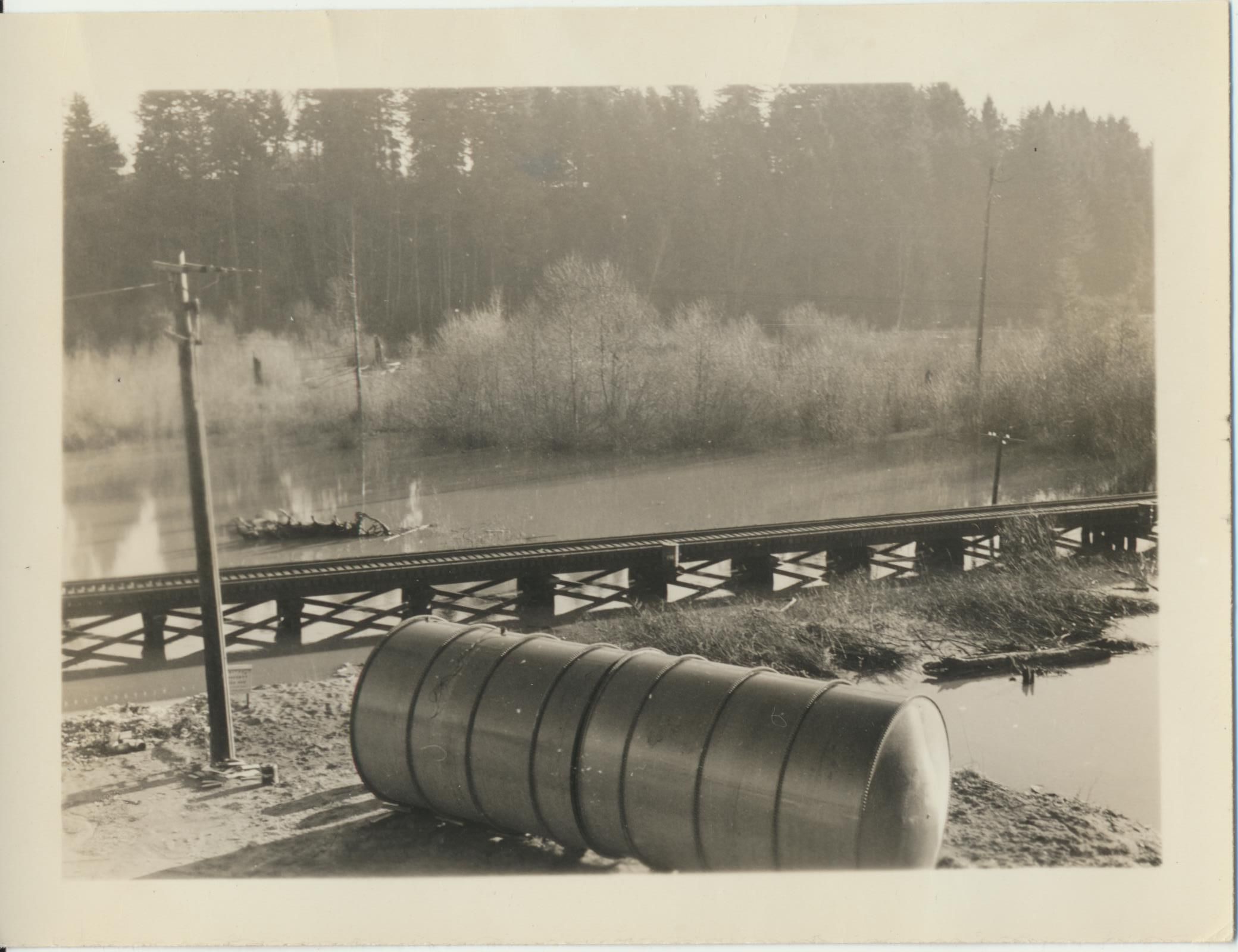 Photograph. Looking east from brewery over railroad trestle and marsh on east side of Carlyon Bridge.