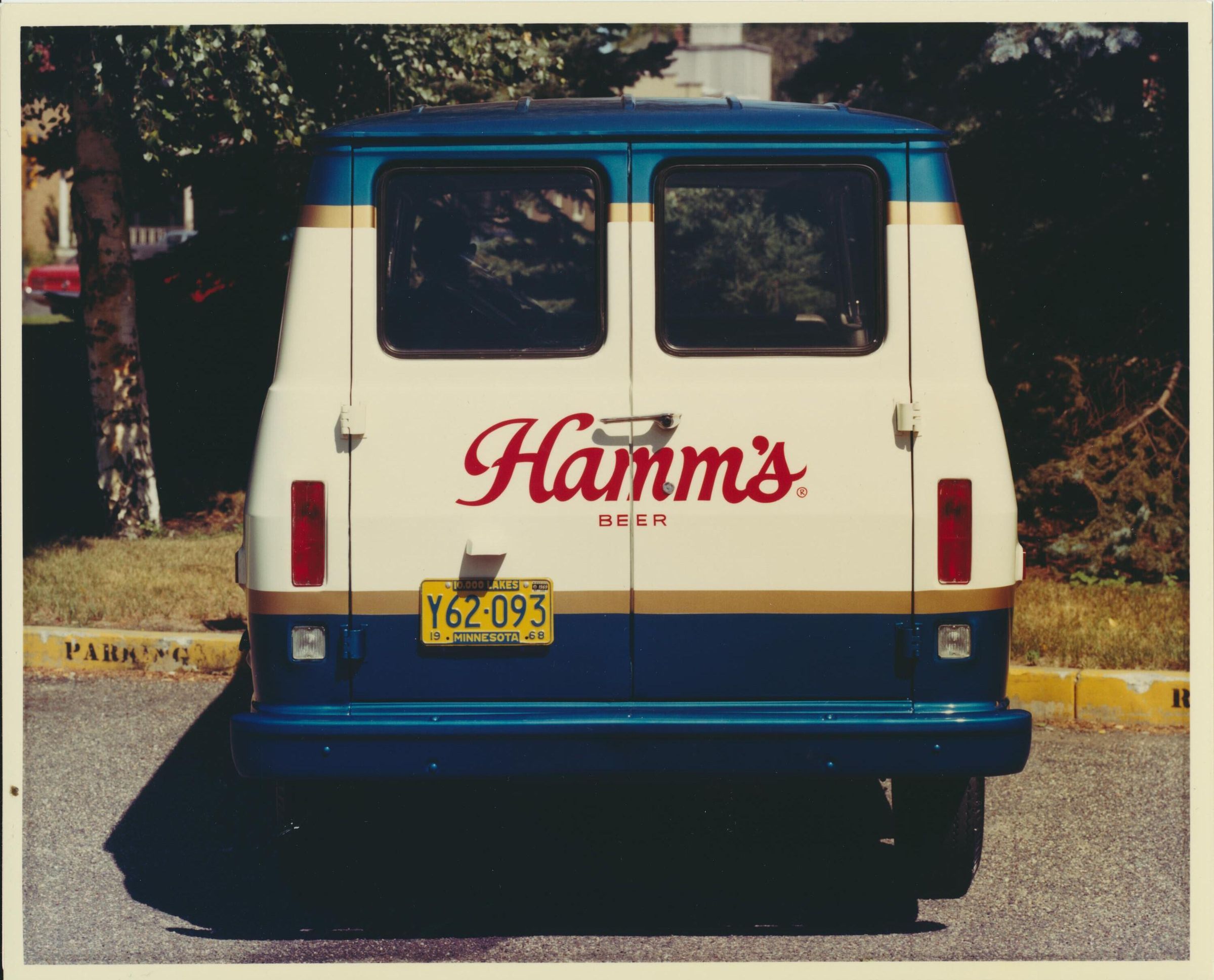 Photograph. 1968 Chevrolet van, with Hamm's beer logo. Van owned by Alcorn Beverage Company, South St. Paul MN.