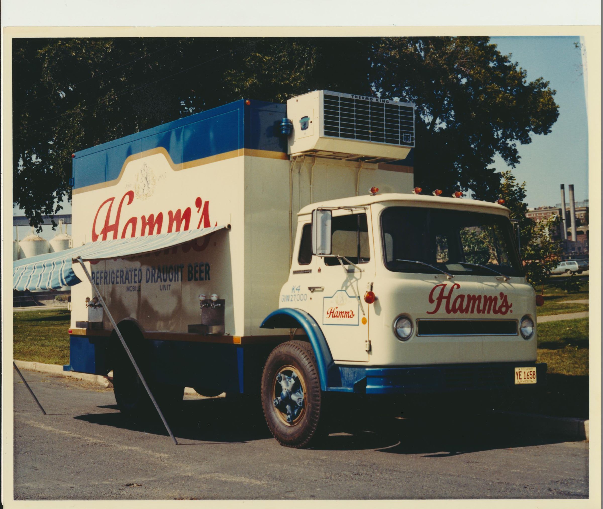 Photograph. Refrigerated truck carrying and serving Hamm's beer. Owned by Twin City Sales, Minneapolis-St. Paul MN.