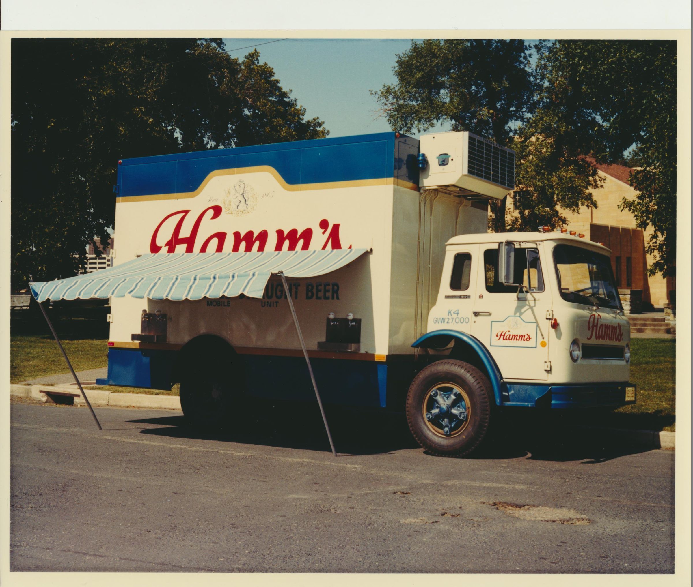 Photograph. Refrigerated truck carrying and serving Hamm's beer. Owned by Twin City Sales, Minneapolis-St. Paul MN.