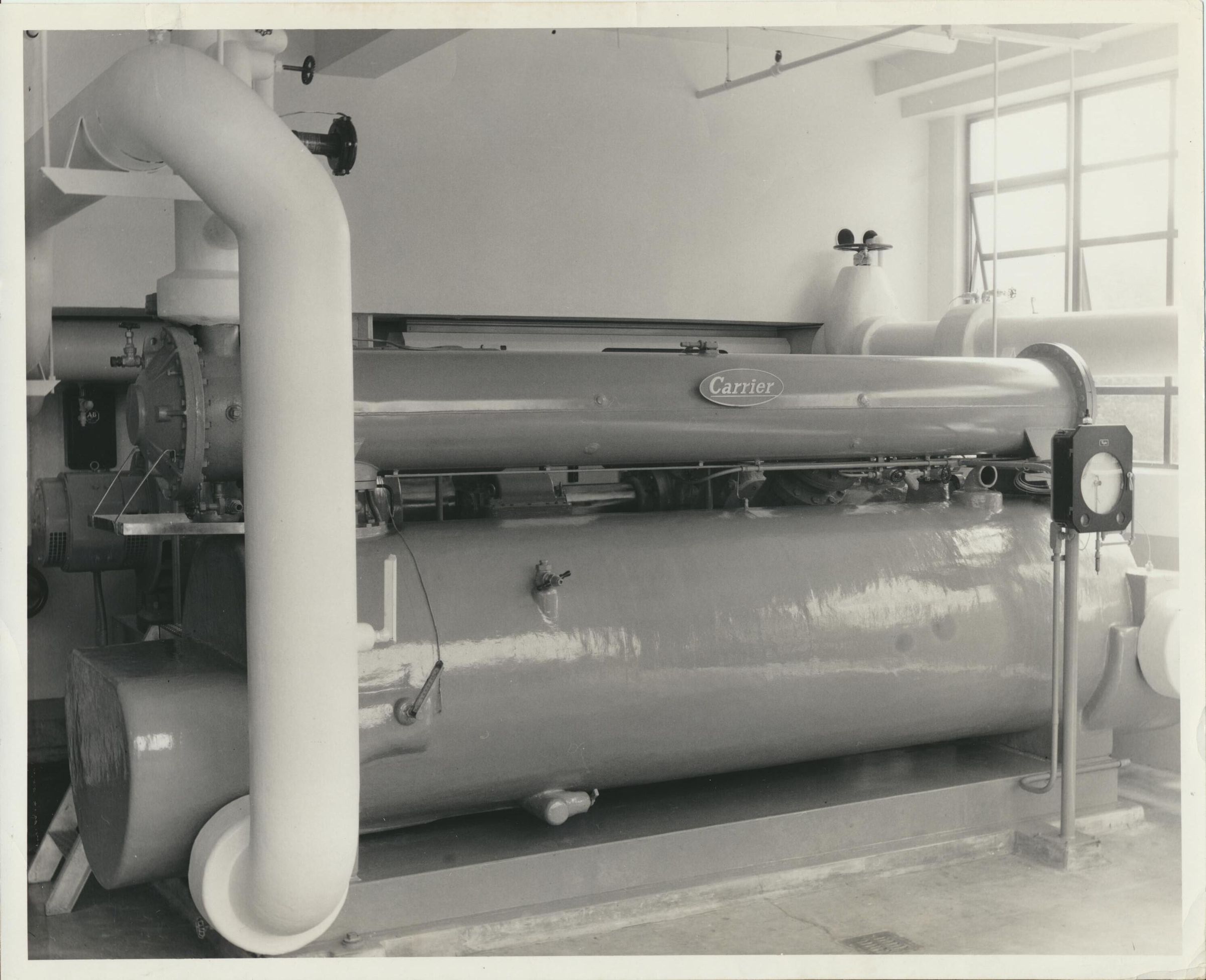 Photograph. Carrier refrigerator comperssor in K engine room at Olympia brewery.