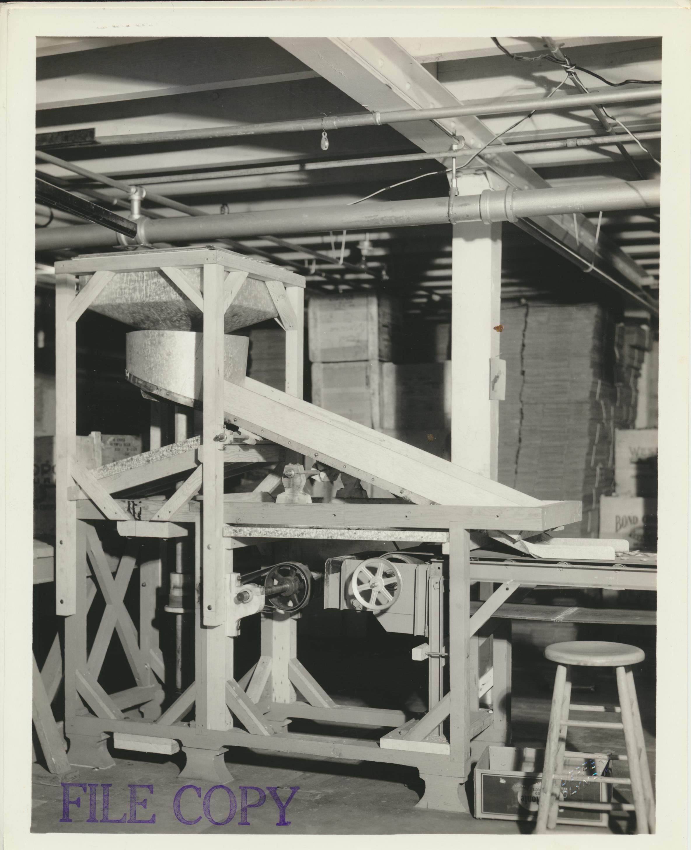 Photograph. Bottle cap sorter, at Olympia brewery or other.
