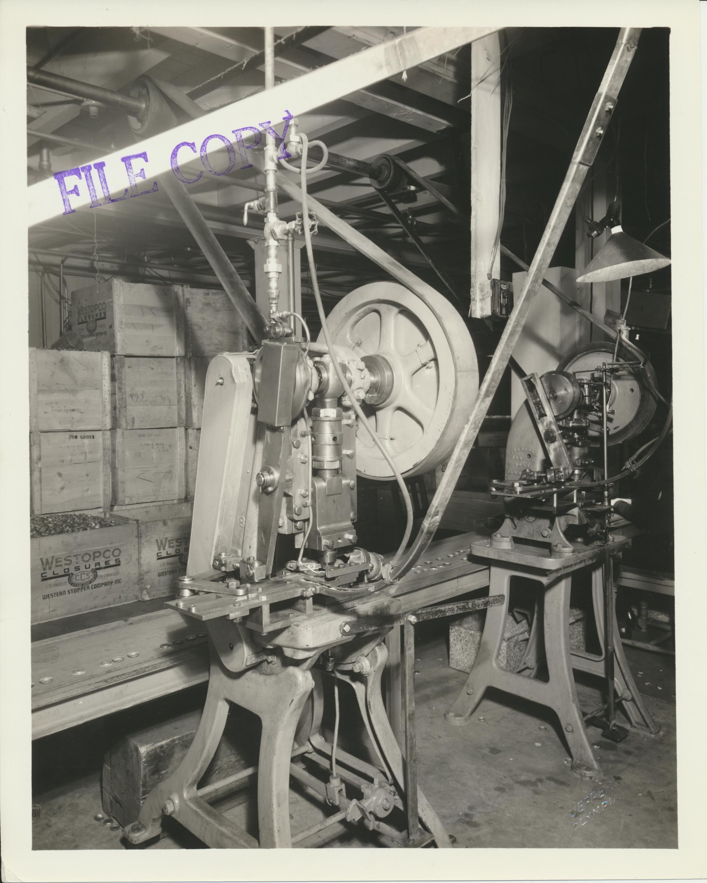 Photograph. Bottle cap sorter, at Olympia brewery or other.