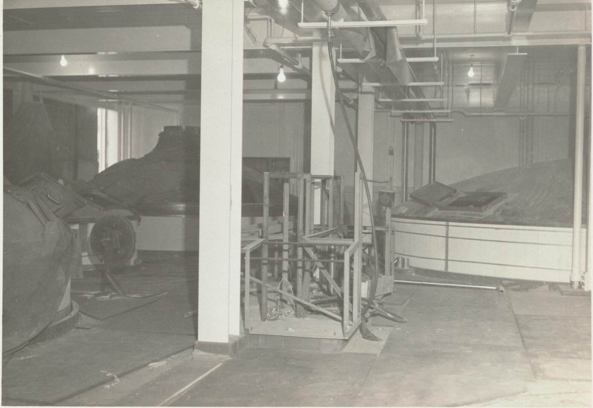 Photograph. Framework for control panel for #6 lauter tub in B brewhouse at Olympia brewery.