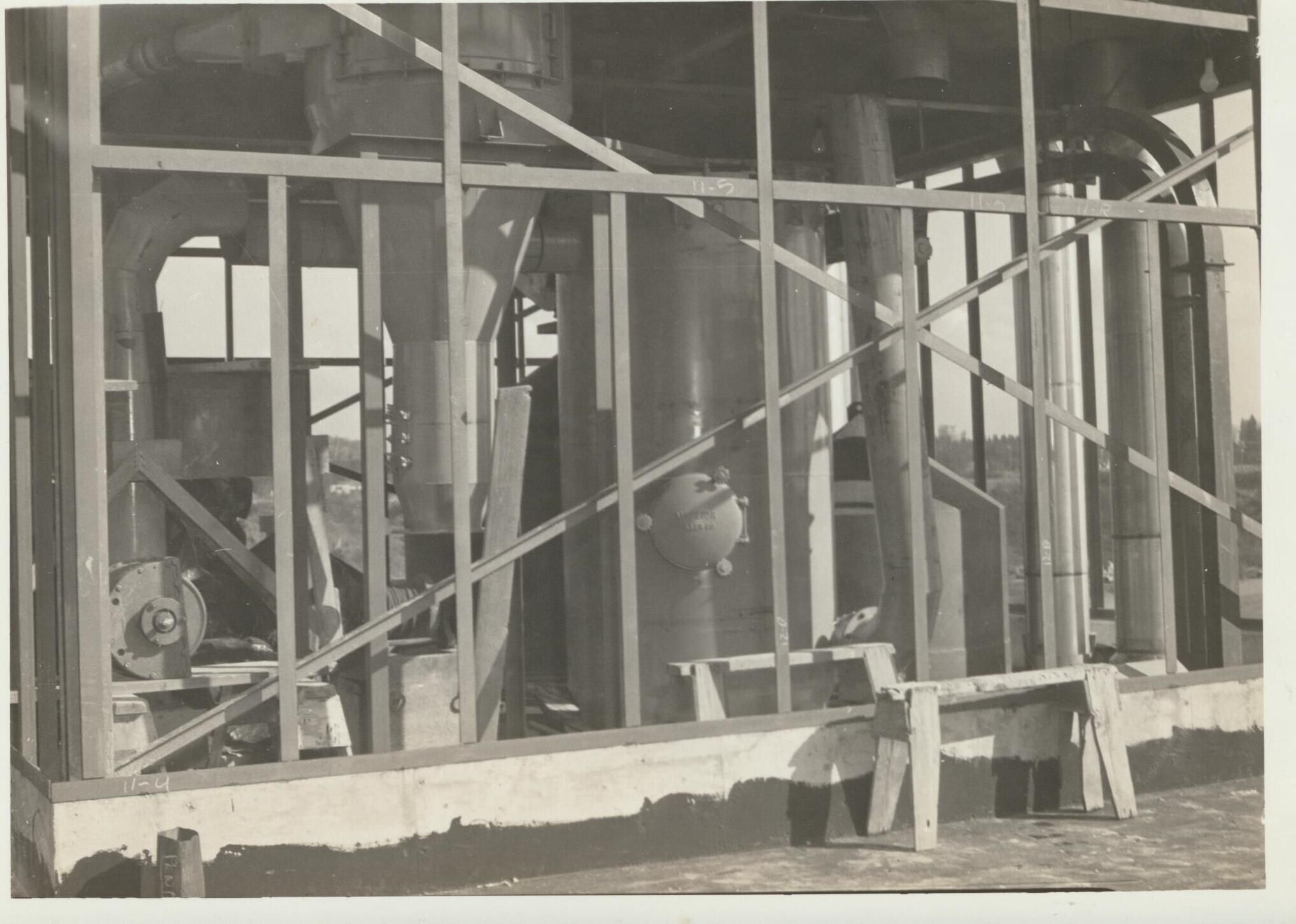 Photograph. Grain handling equipment/vacuum system at Olympia brewery.