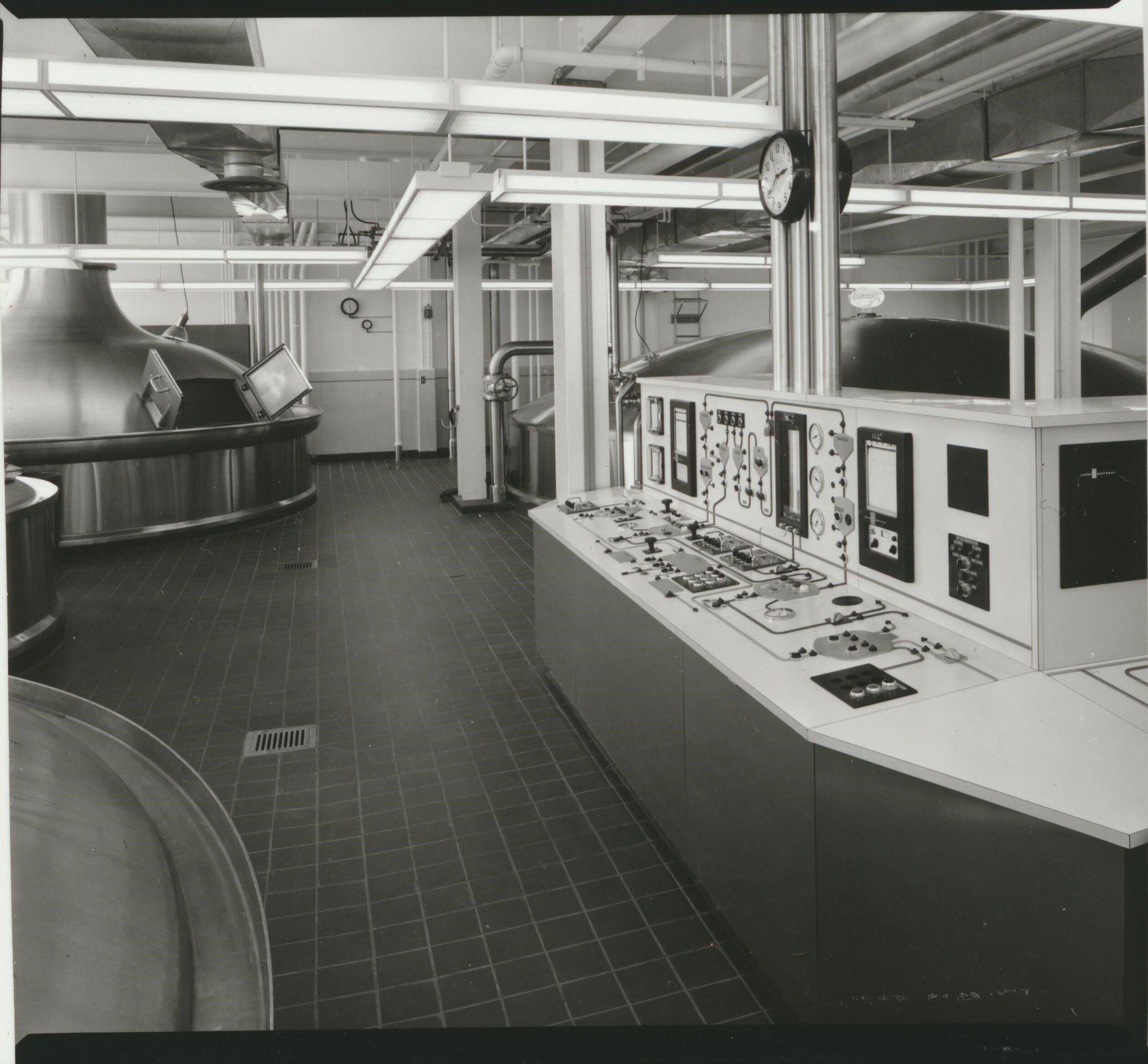 Photograph. #6 kettle and control panel at Olympia brewery.