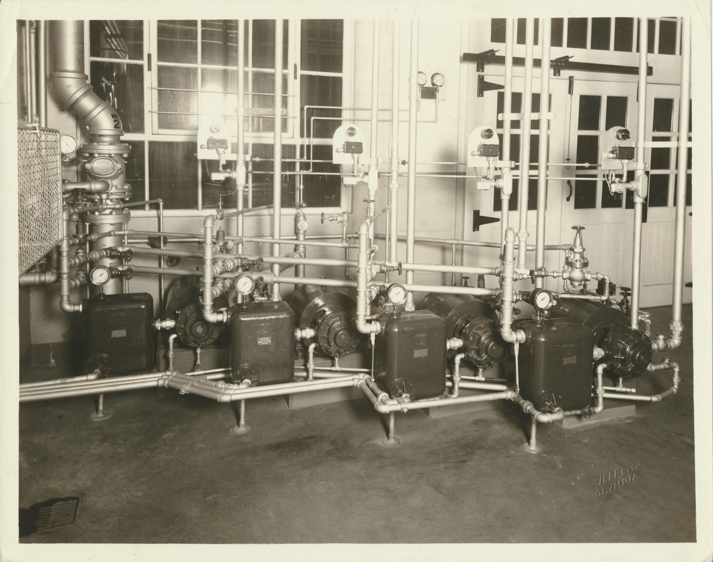 Photograph. Unidentified equipment, but probably at Olympia brewery, as the photo was taken by the Jeffers Studio of Olympia.