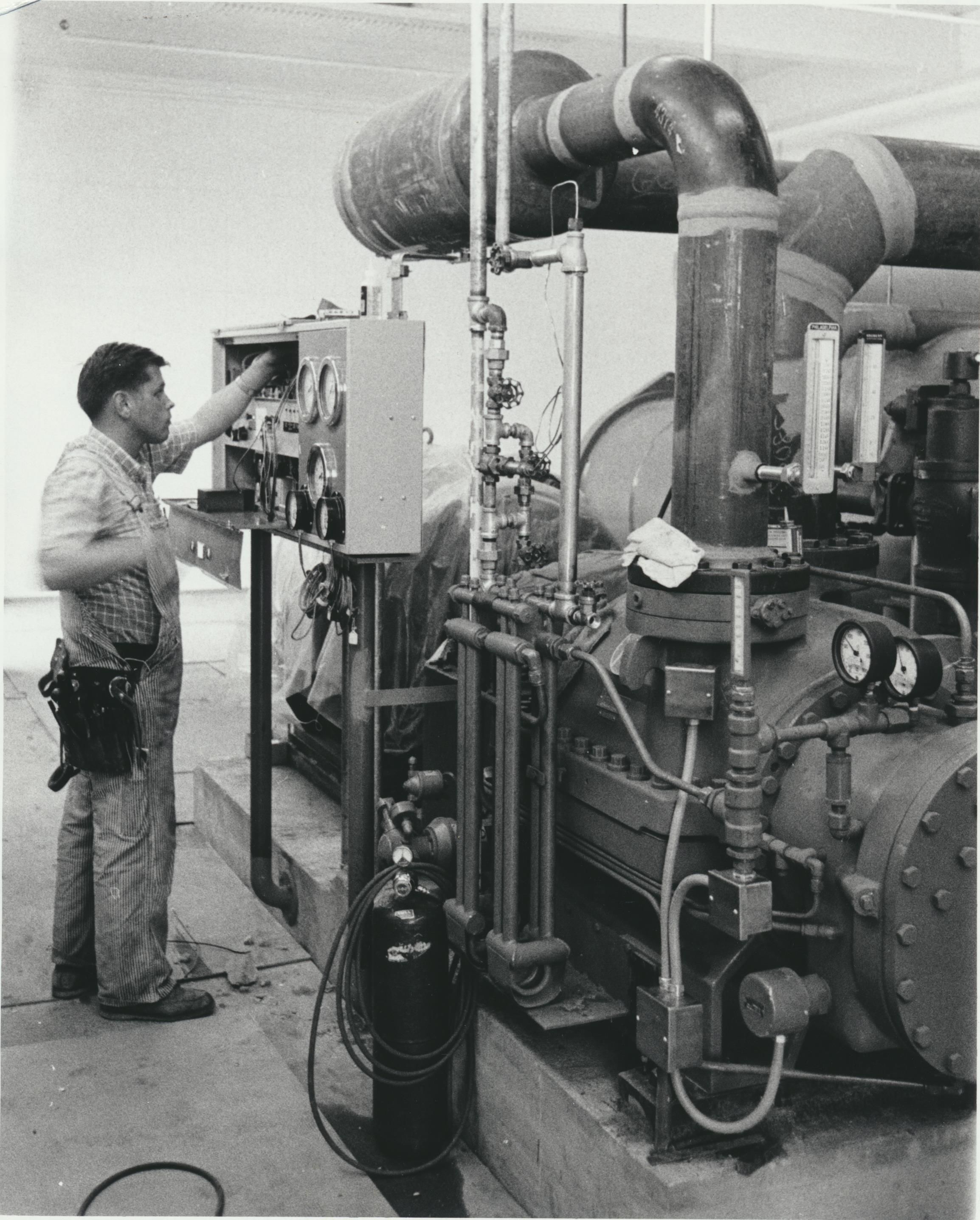 Photograph. Installing York compressor at Olympia brewery.