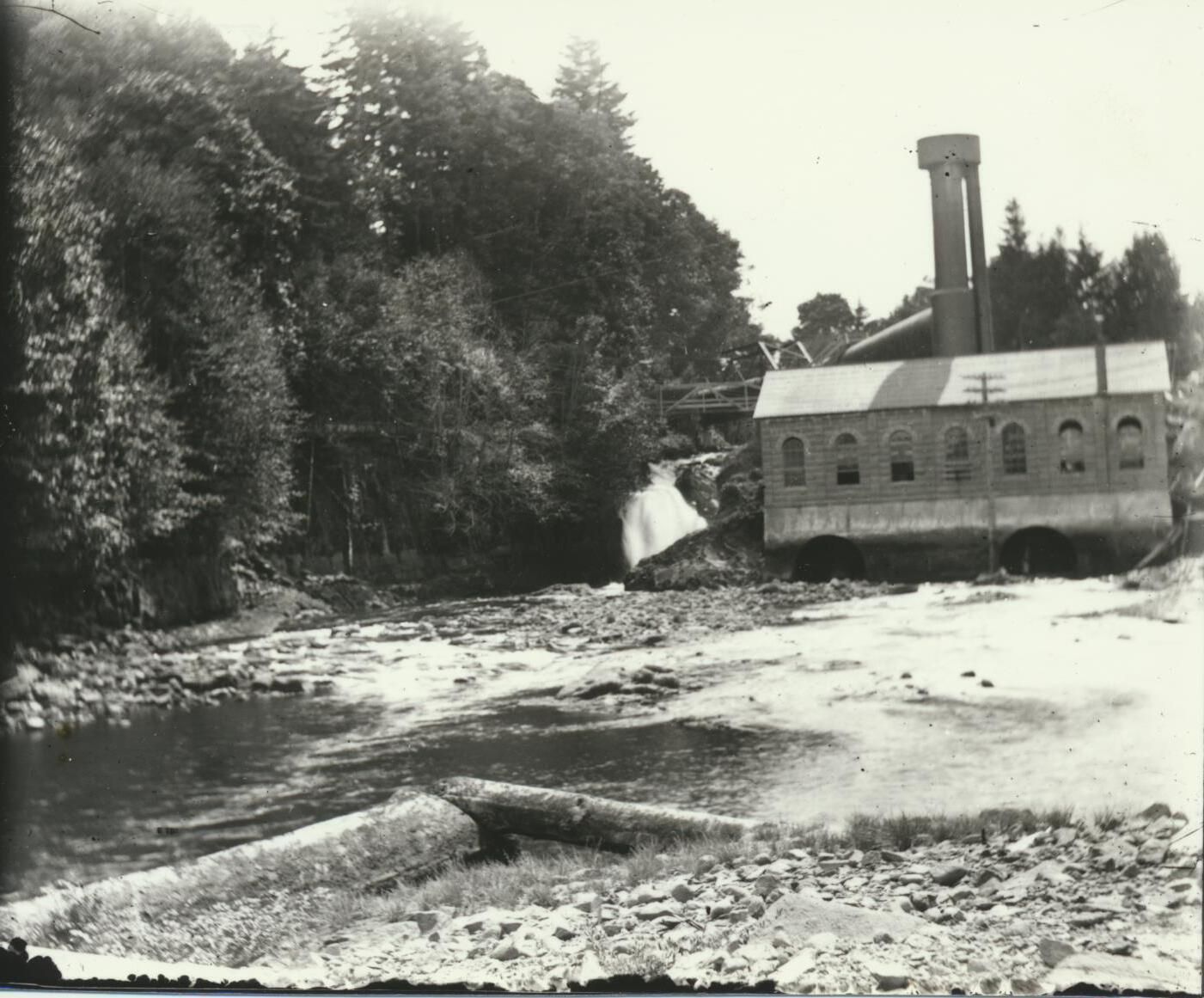 Photograph. Power house #2, built in 1904, for Olympia Light and Power at base of Lower Falls of Deschutes River.