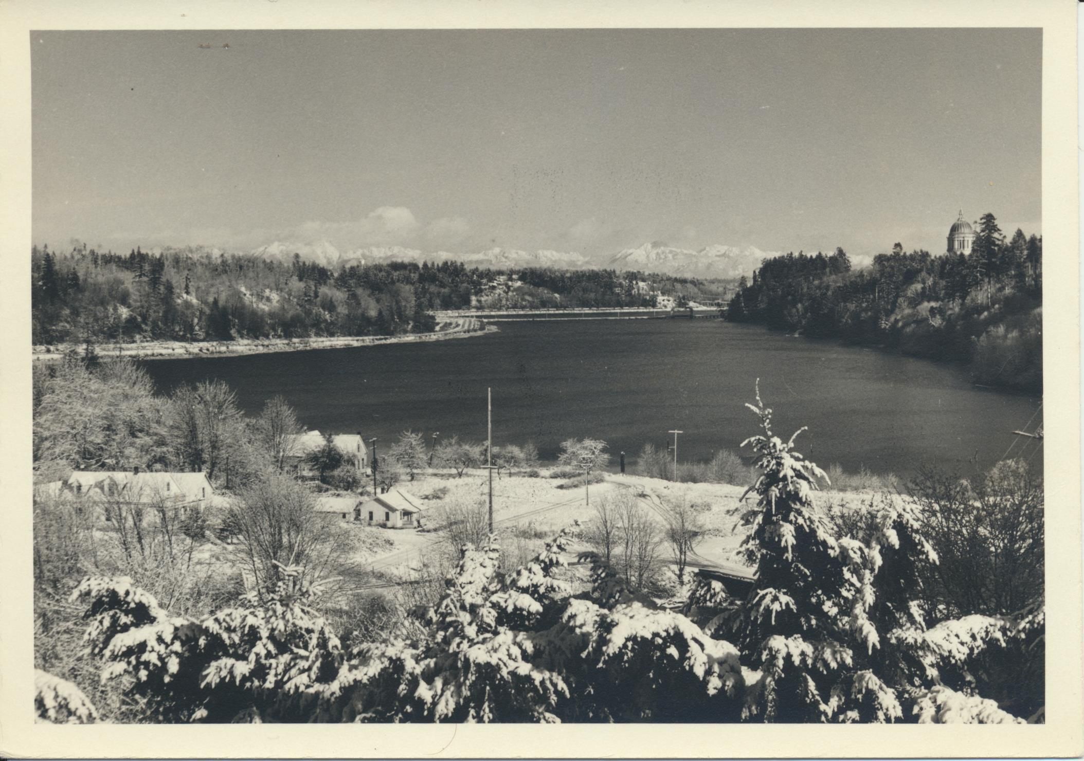 Photograph. View from Schmidt House looking north over Capitol Lake.