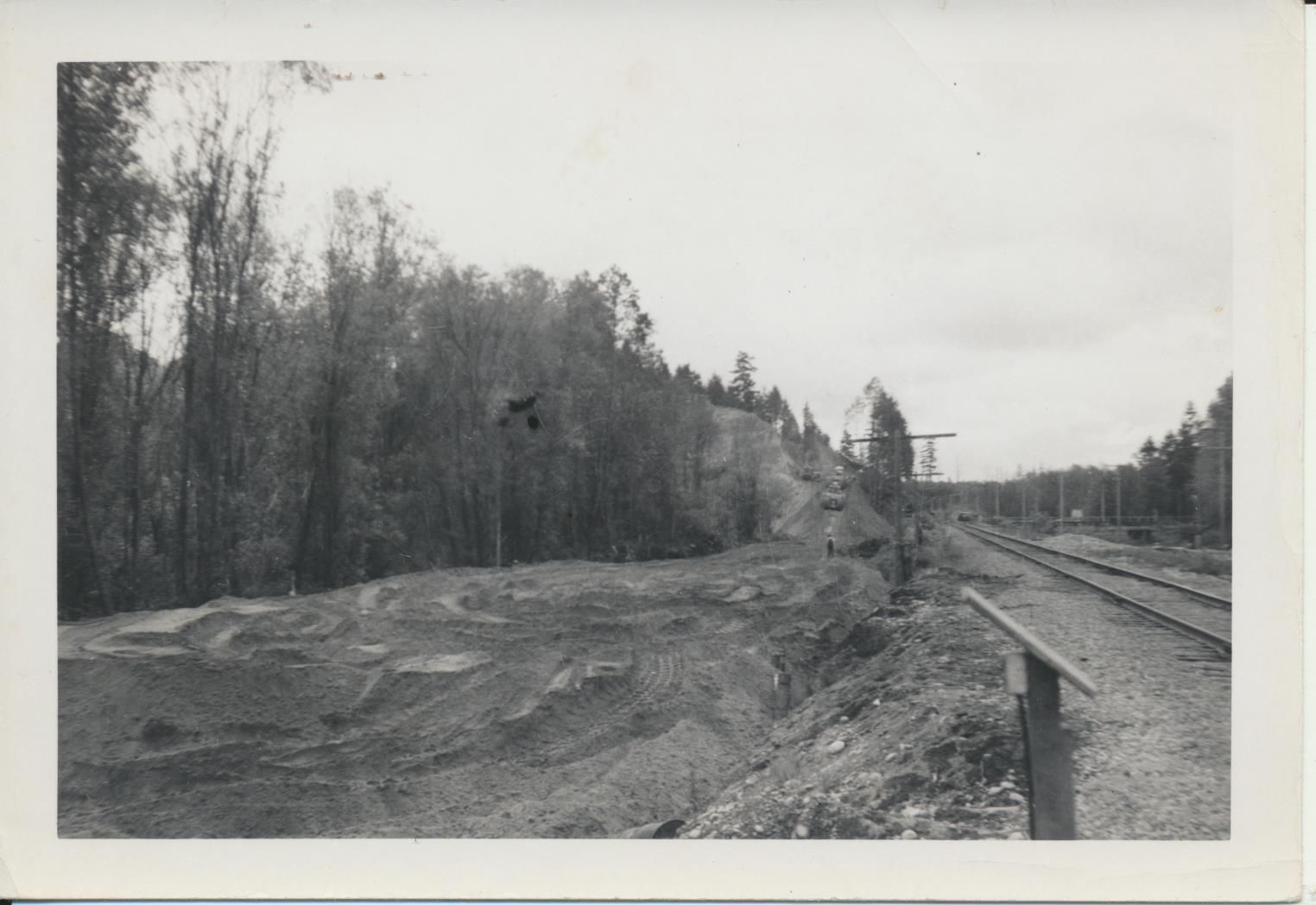 Photograph. Grading along railroad tracks at an unknown location in Tumwater or Olympia.