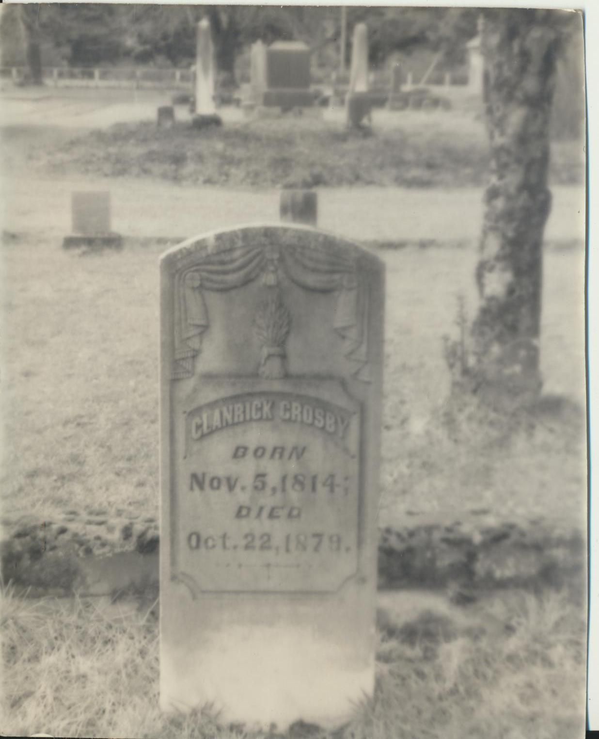 Photograph. Gravestone for Clanrick Crosby, 1814-1879. Located in Masonic Memorial Park, Tumwater.