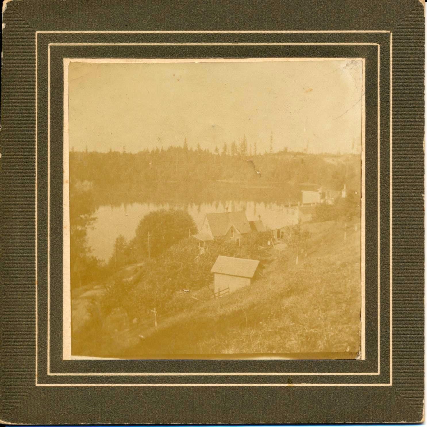Photograph. Looking northeast at Hillside Inn, and Olympia brewery in background. White column at far right is boiler stack from steam plant.