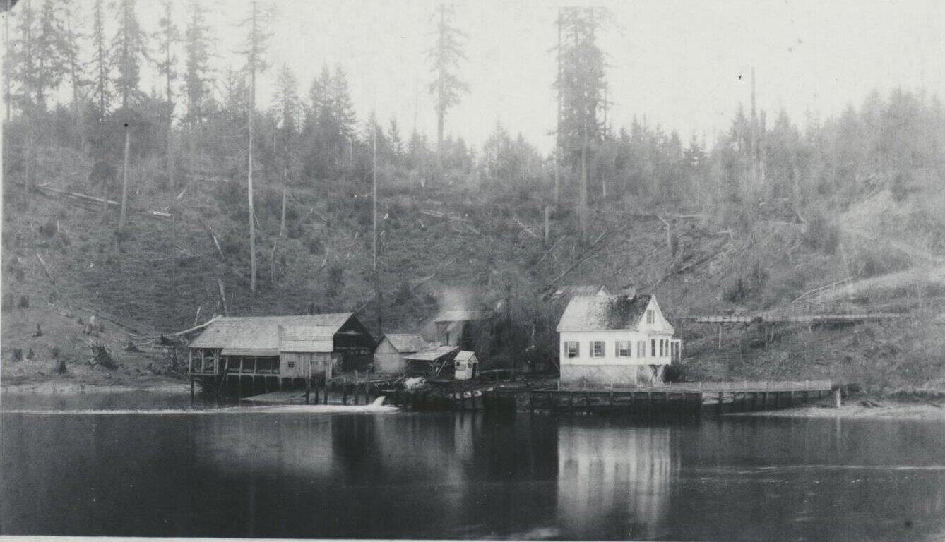 Photograph. Upper reaches of Puget Sound at Tumwater, showing Carter and Biles tannery property, which was in 1895 purchased by Leopold F. Schmidt for brewery.