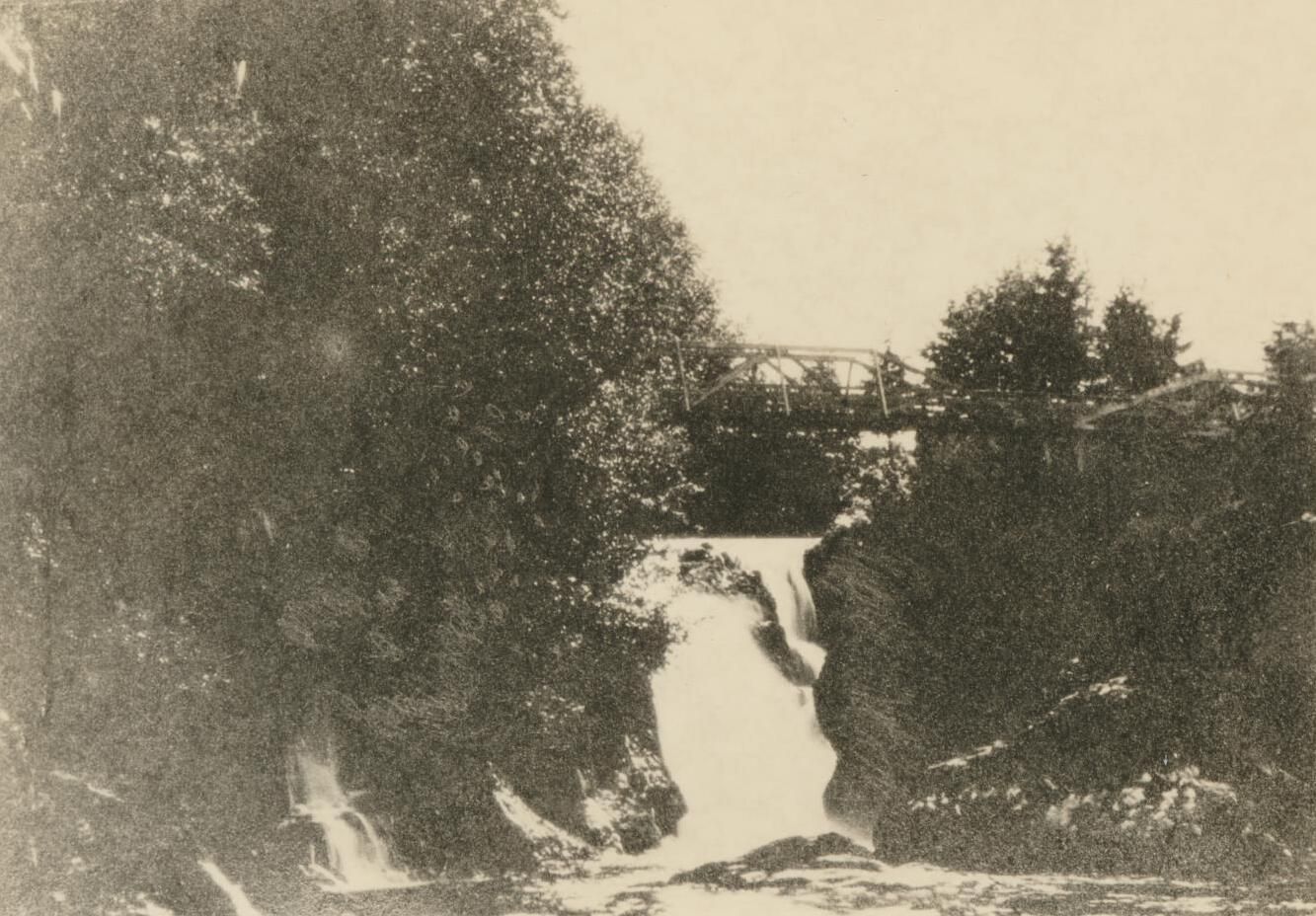 Photograph. Lower Tumwater Falls on Deschutes River. Footbridge over falls.