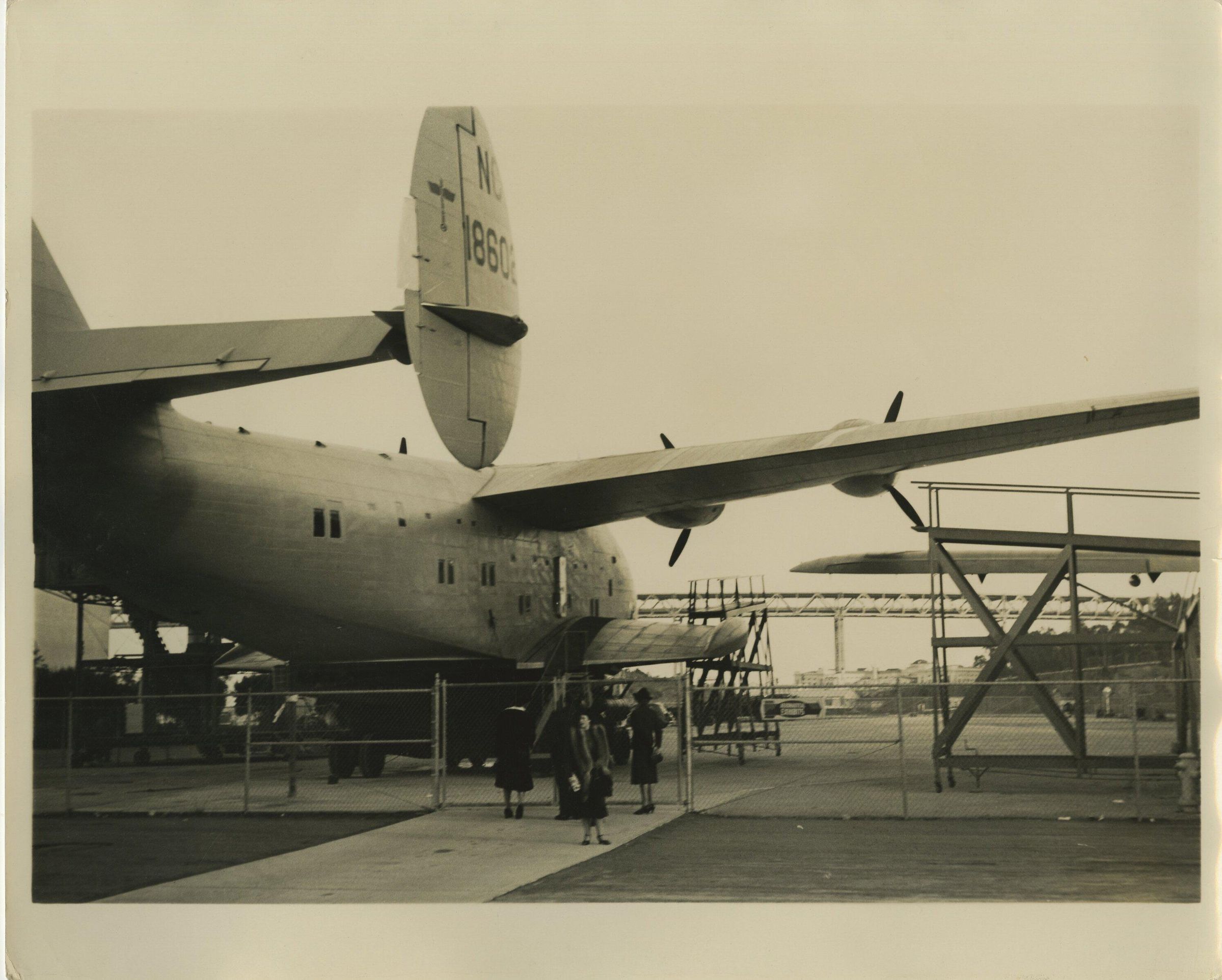 Photo, 8 x 10 sepia. Pan American California Clipper, NC 18602. Unknown location.