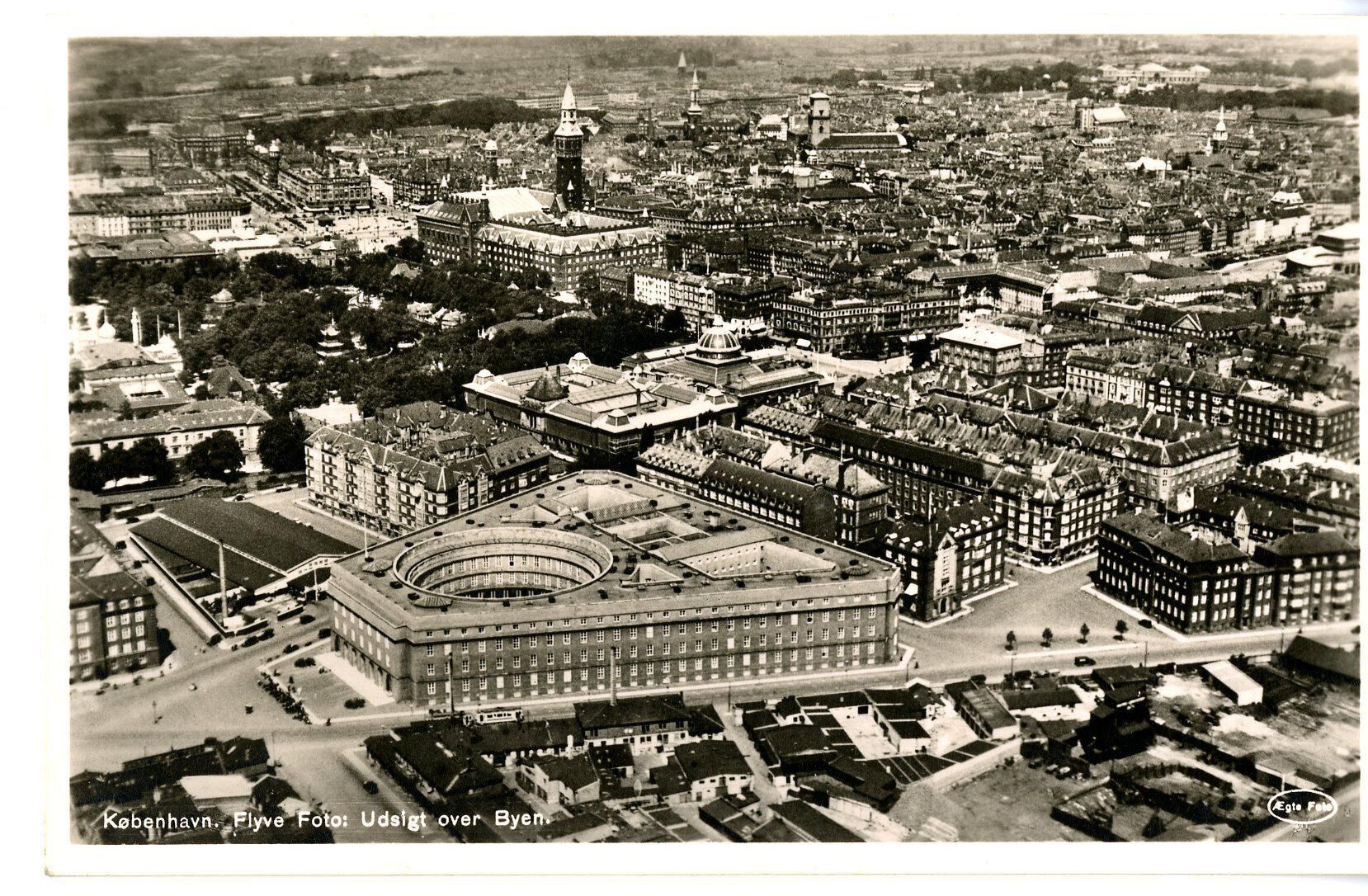 Postcard, picture, real photo. 3 1/2 x 5 1/2 b&w. Aerial view of Copenhagen, Denmark.