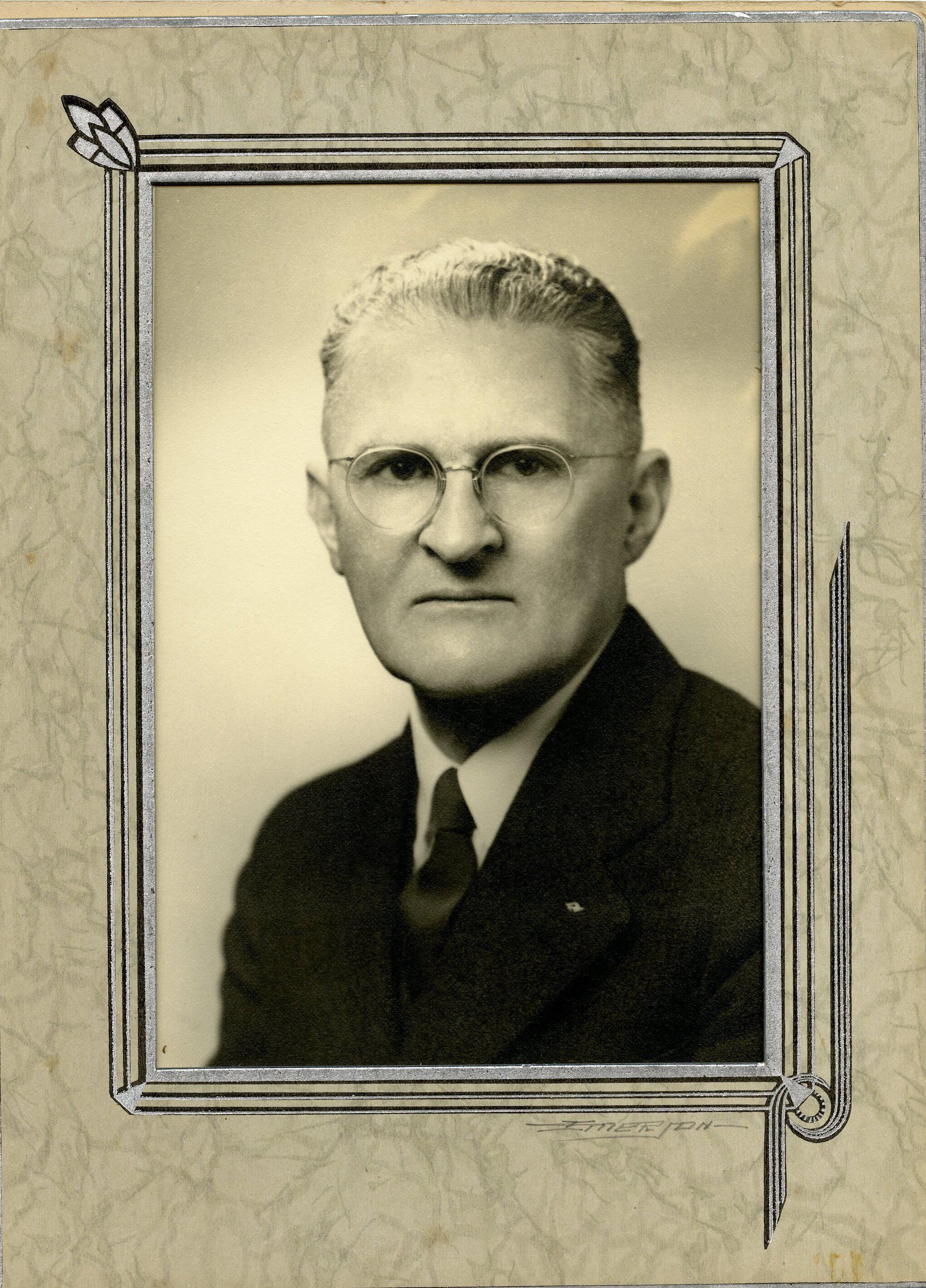 Print, photographic (3). 4 1/2 x 6 1/2 b&w. Mounted in Emerson folder. Portrait of Peter G. Schmidt, Sr., unknown date.