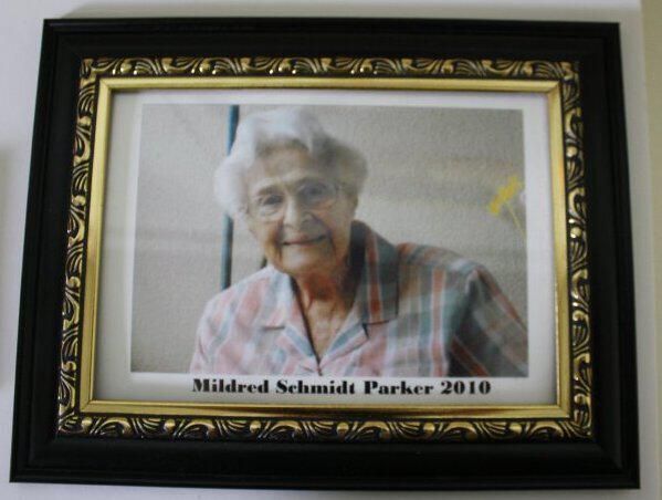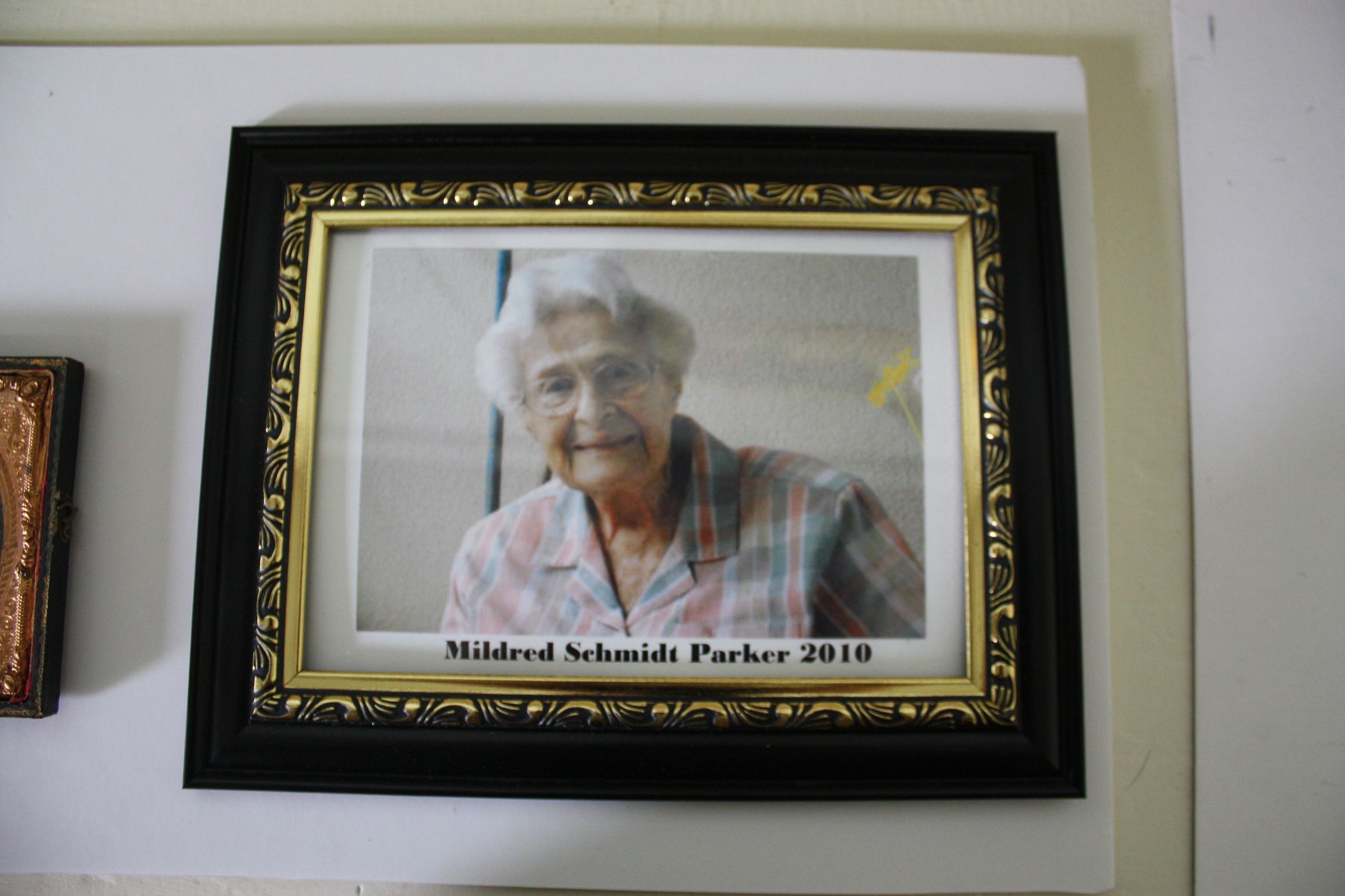 Photograph. Image 5 3/4 x 4, in 9 x 7 frame. Photo titled "Mildred Schmidt Parker, 2010."