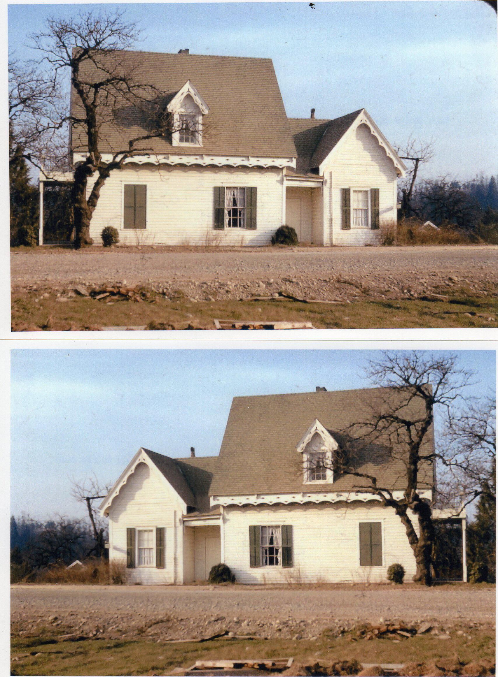 Print, photographic (2). Modern reproduction from slide of Crosby House in Tumwater, before Interstate 5 was built. Photo taken by Otha G. "OG" Holt, and donated by his family. Photo shows side of house, and was made from a color slide. Family was unsure which way slide faced, so made one copy each possibility. Bottom slide is correct, with front porch to right.Name/Title